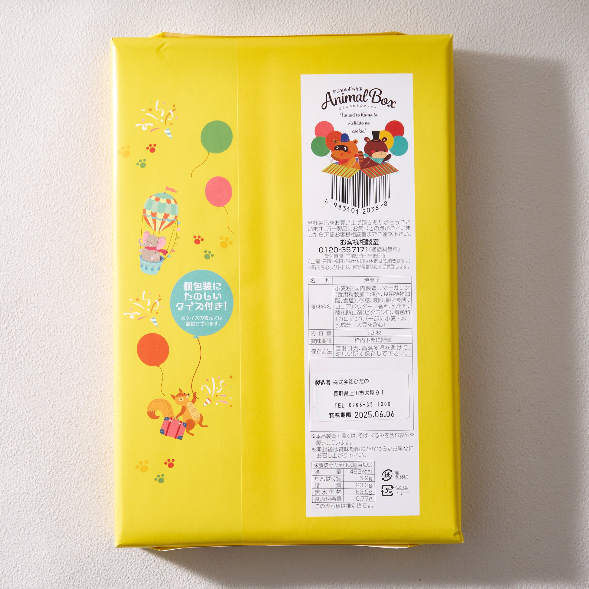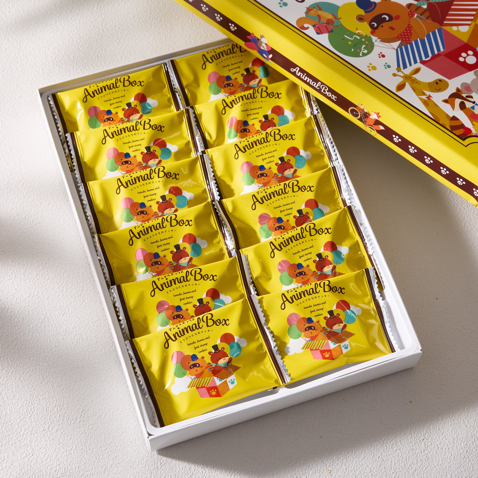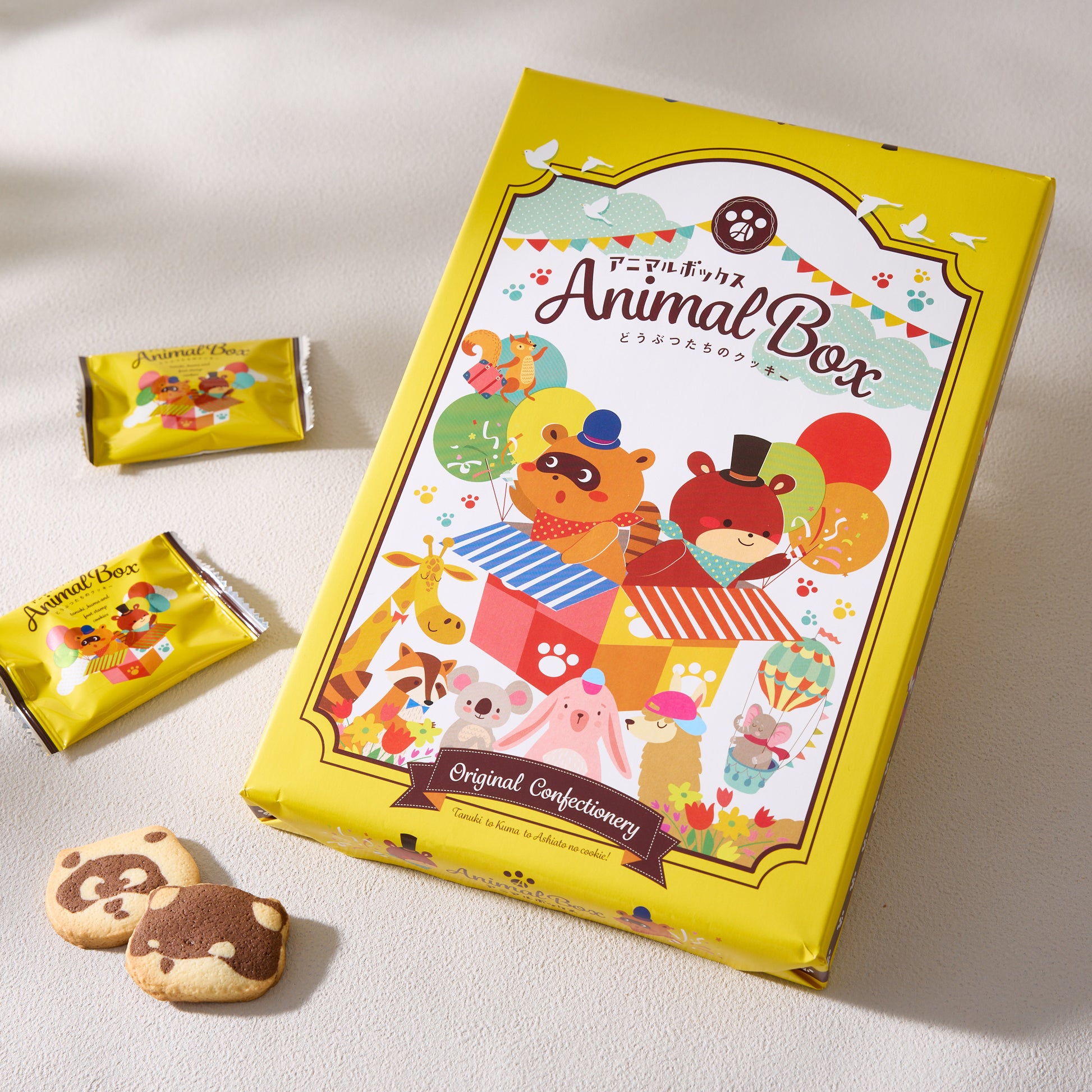 Delight in the playful charm of Animal Box Cookies, a collection of Japanese cookies shaped like endearing animals, including tanuki (Japanese raccoon dogs, beloved in local folklore), bears, and paw prints.