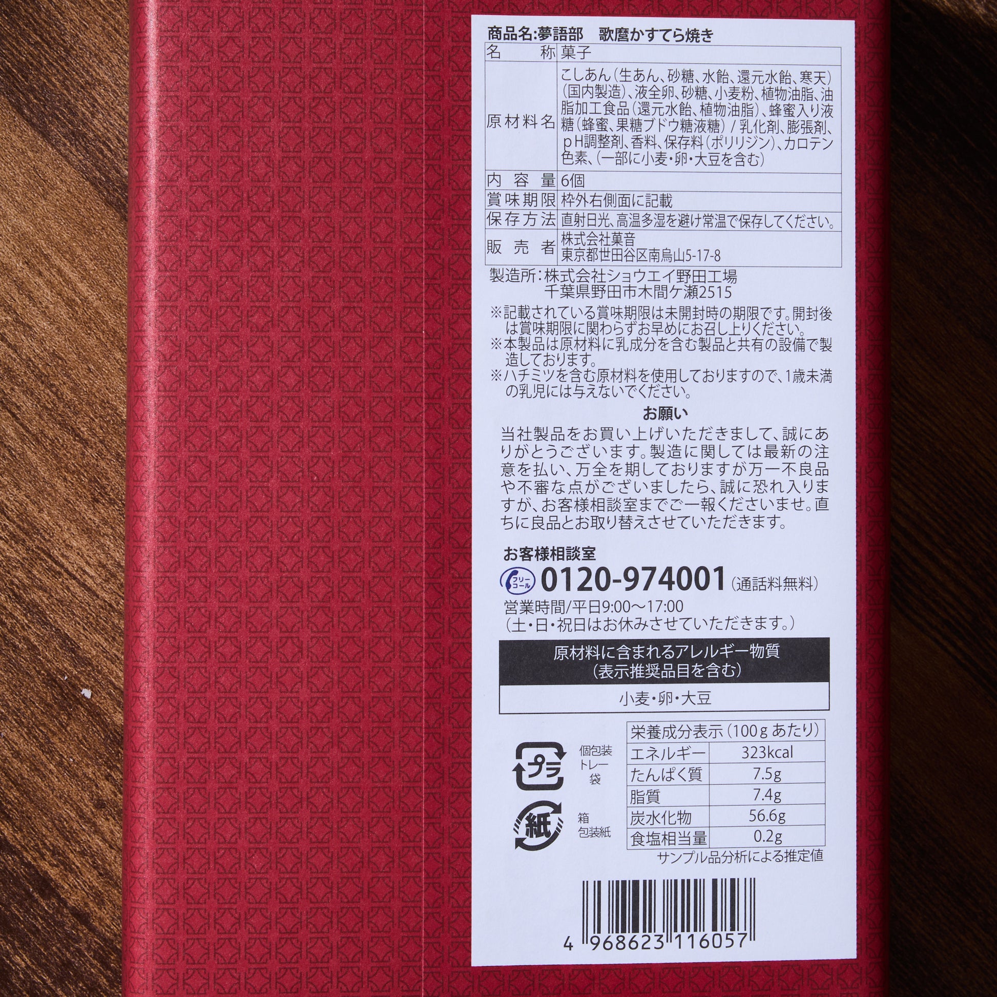 A delicate harmony of flavor and texture, this refined confection embodies the elegance of traditional Japanese sweets. Smooth red bean paste is first enveloped in castella dough, then gently baked to achieve a tender, moist finish. Crafted without water and using an abundance of fresh eggs, the dough offers a rich, satisfying texture—free from preservatives and artificial coloring. The packaging pays homage to the iconic ukiyo-e artist Sharaku (写楽), known for his portraits of traditional Kabuki (歌舞伎) actors.