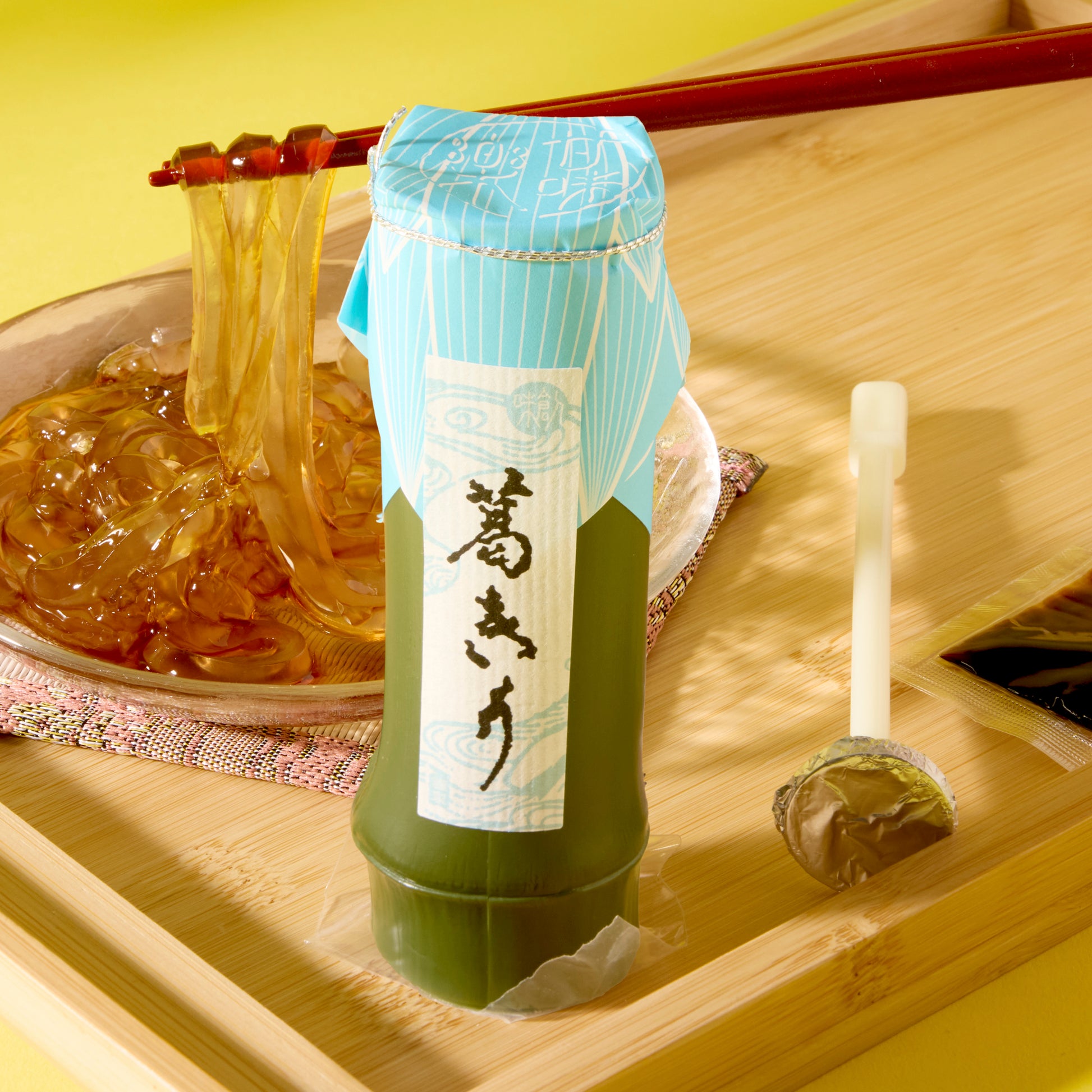 Experience a refreshing take on traditional Japanese sweets with this elegant Bamboo Kuzukiri.