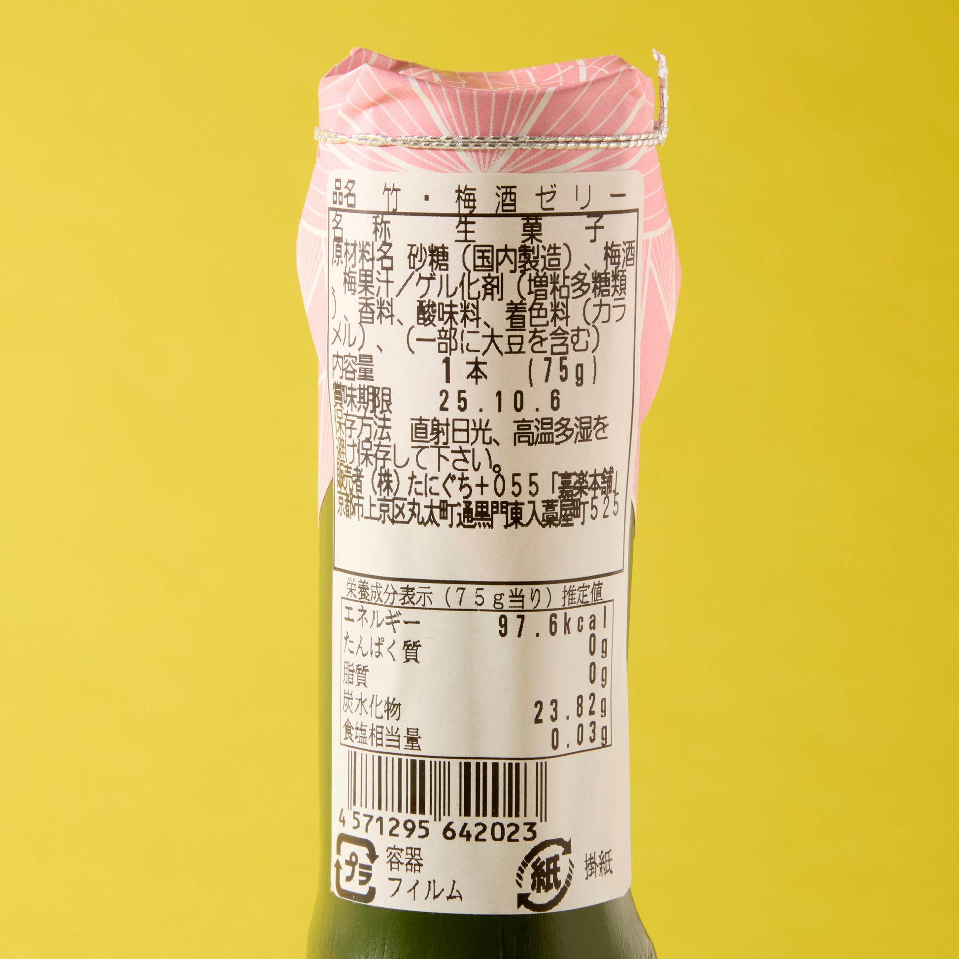 Delicately crafted and beautifully presented in a bamboo-shaped container, this Umeshu Jelly offers a refreshing take on a beloved Japanese flavor.