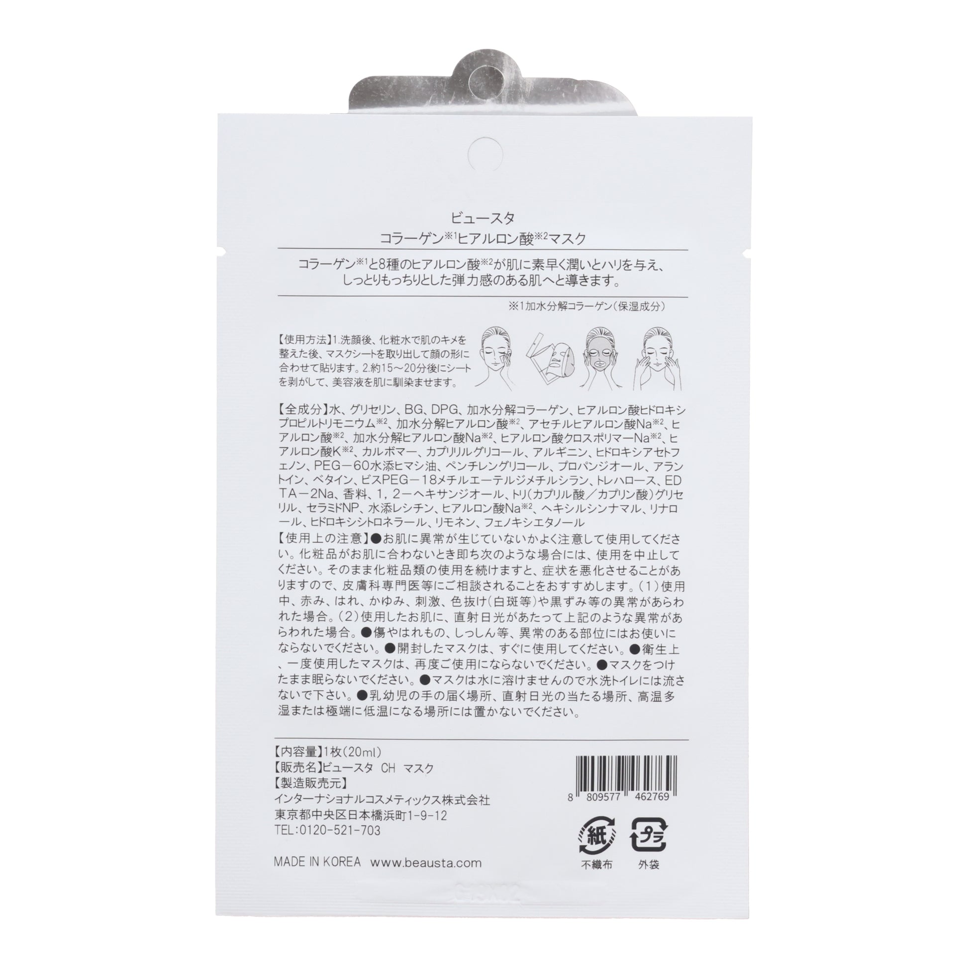 BEAUSTA Dual Formula Collagen × Hyaluronic Acid Mask