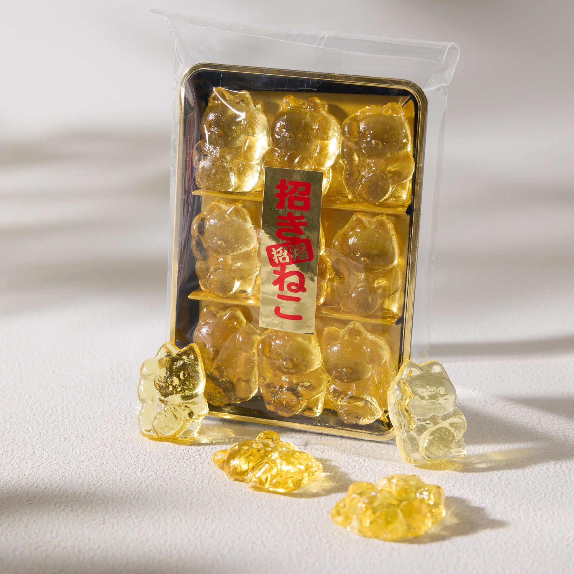 Enjoy the sweet, traditional flavors of these handcrafted amber hard candies shaped like the maneki neko, or beckoning cat—a symbol of good fortune in Japan.