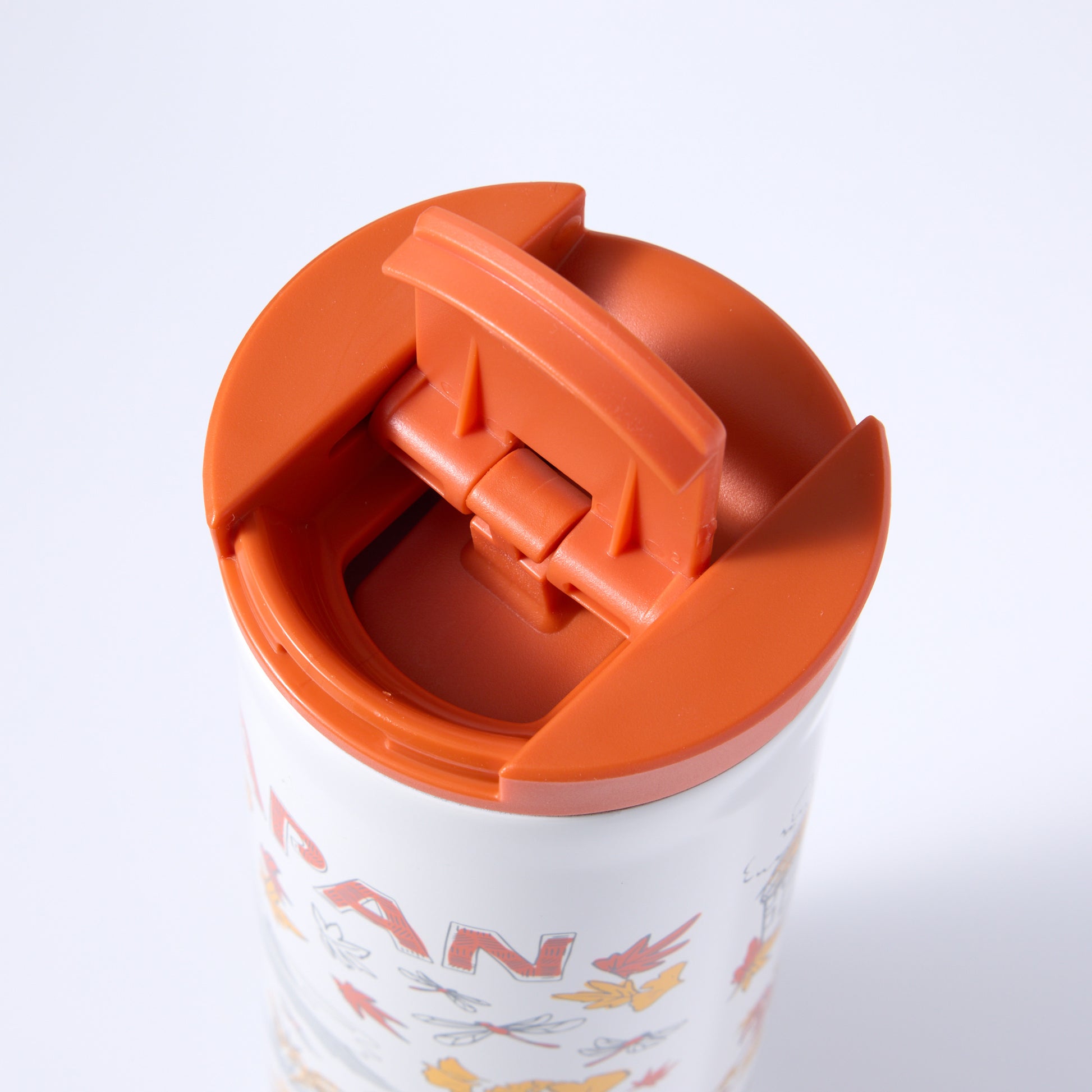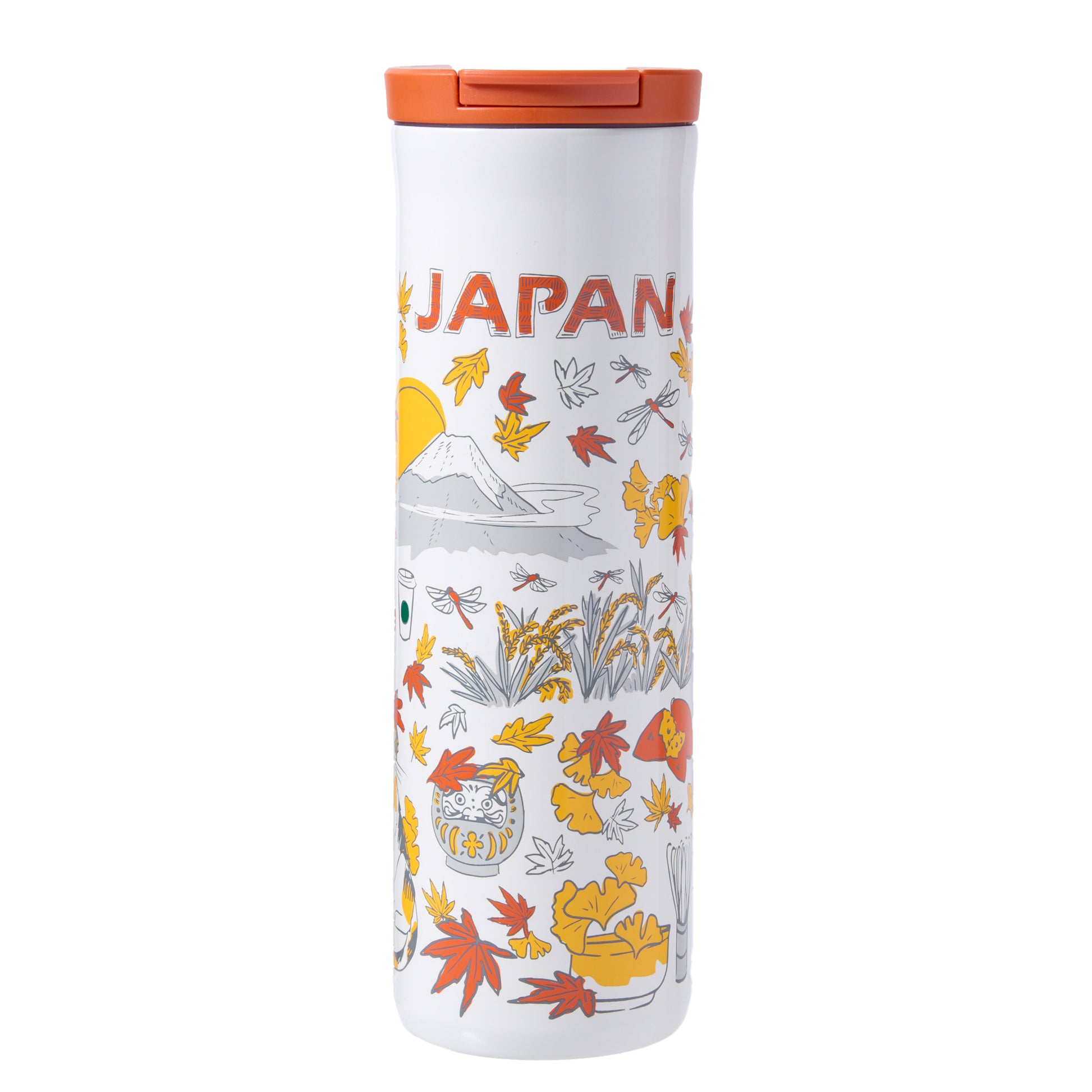 This stylish bottle features captivating designs inspired by the essence of autumn in Japan, including the majestic Mt. Fuji, rice in the countryside, flying fireflies, colorful maple leaves, and roasted sweet potatoes brought to life in warm yellow and orange colors.