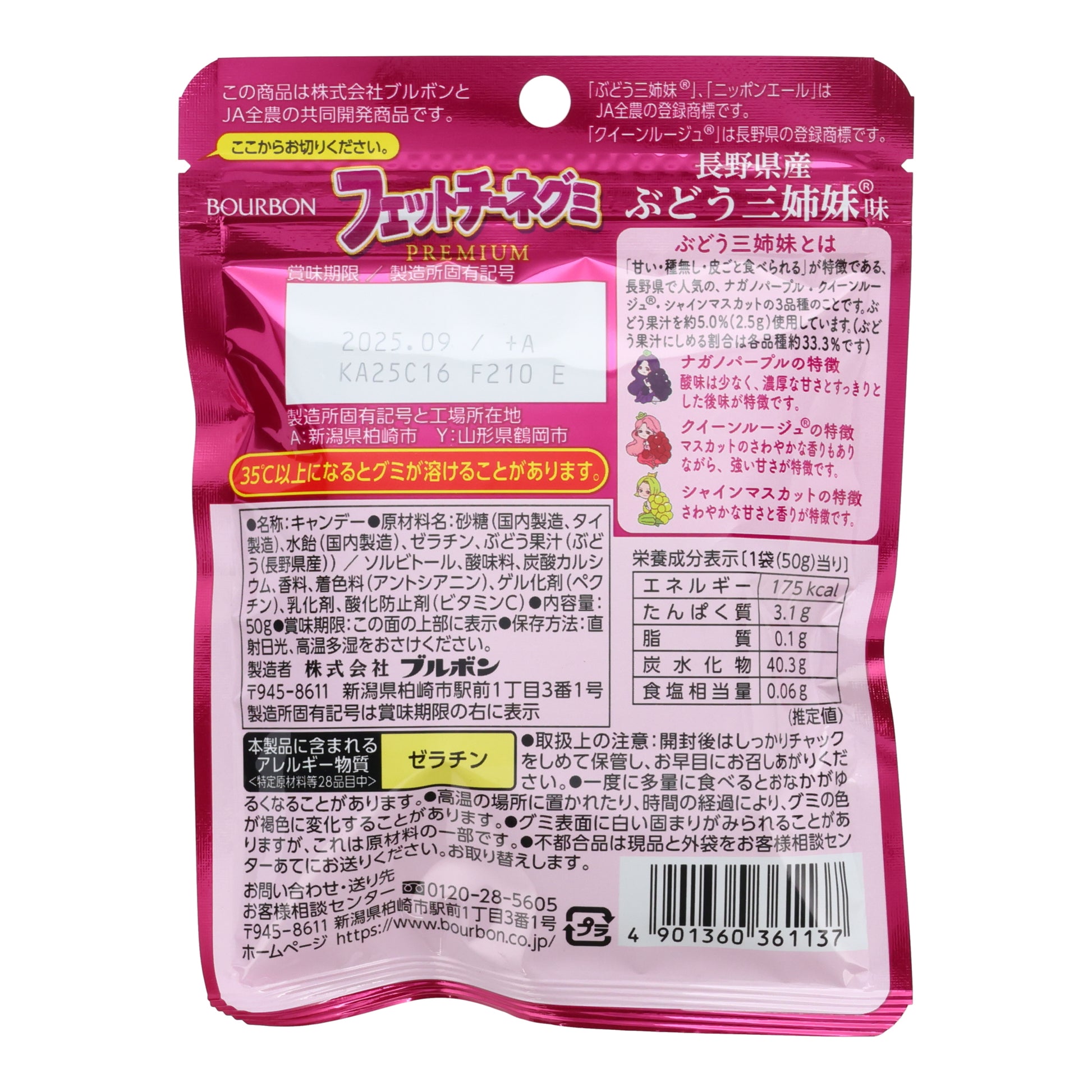 Experience the playful fusion of Japanese snack innovation in these Bourbon Fettuccine Gummies Premium Grape flavor!