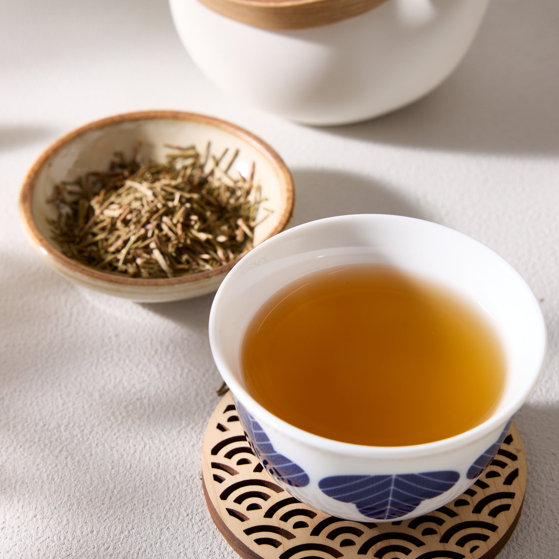 A rare and exquisite houjicha, this tea is crafted from roasted tea stems, offering a mellow and calming experience with every sip. Unlike traditional houjicha, this tea uses matcha stems rather than the usual sencha stems, creating a delicate sweetness that complements its roasted aroma. Known and cherished in Ishikawa Prefecture, this rare tea offers a refined and subtly smooth flavor.