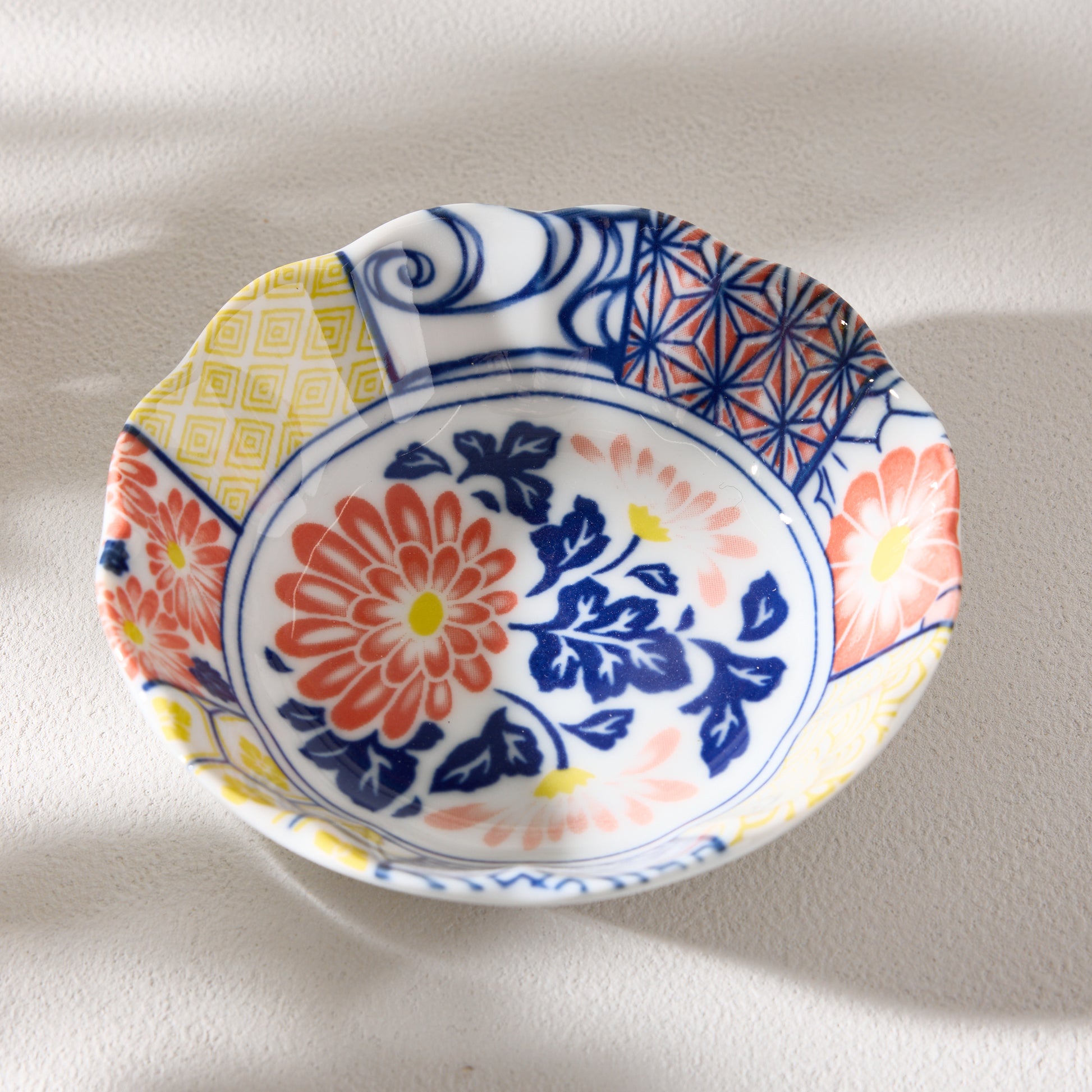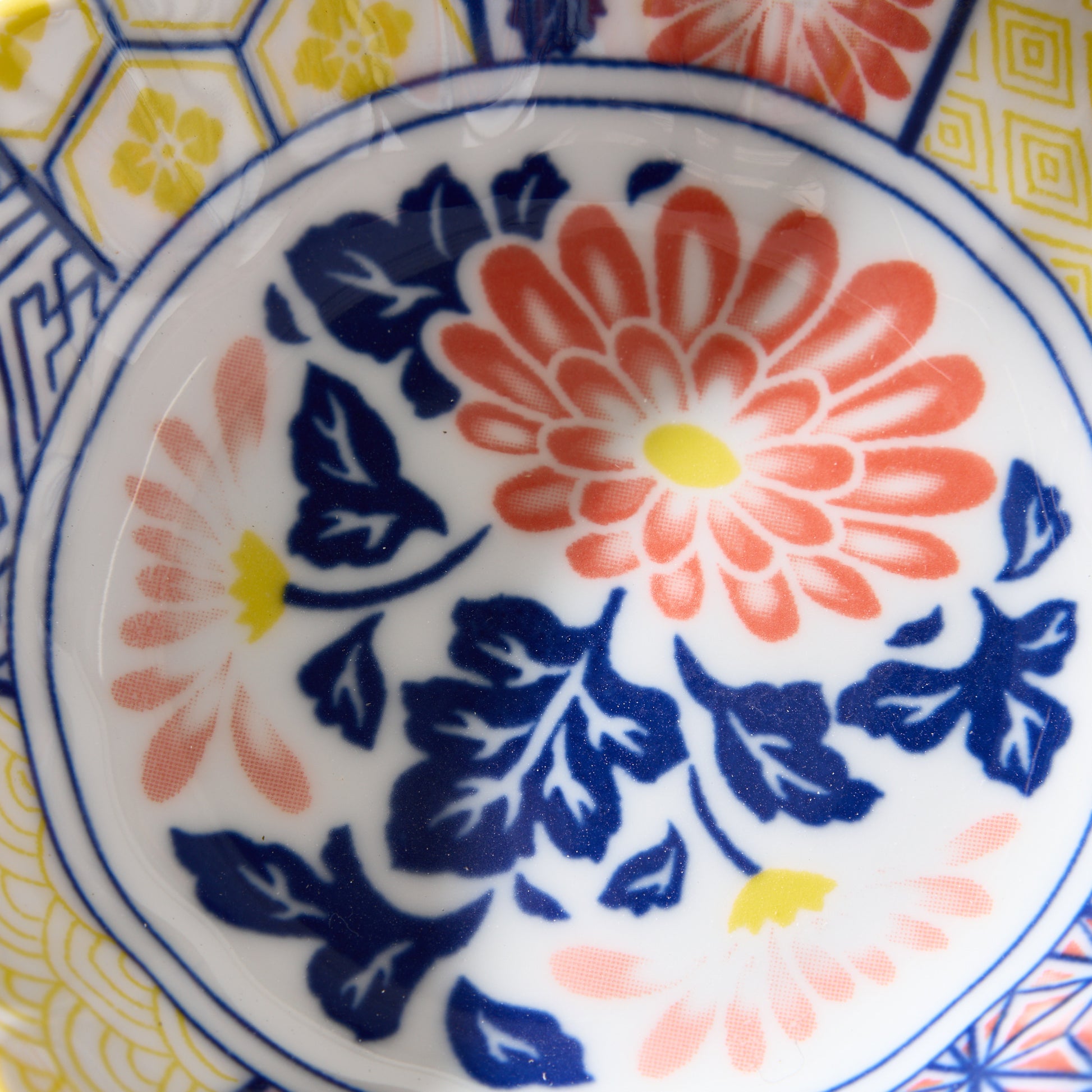 Hand-painted by skilled artisans at Bloom, this porcelain dish features intricate brocade-inspired floral motifs in traditional indigo and vibrant vermilion hues. The design draws on classic Japanese aesthetics—where seasonal flowers symbolize beauty, harmony, and the fleeting nature of time.