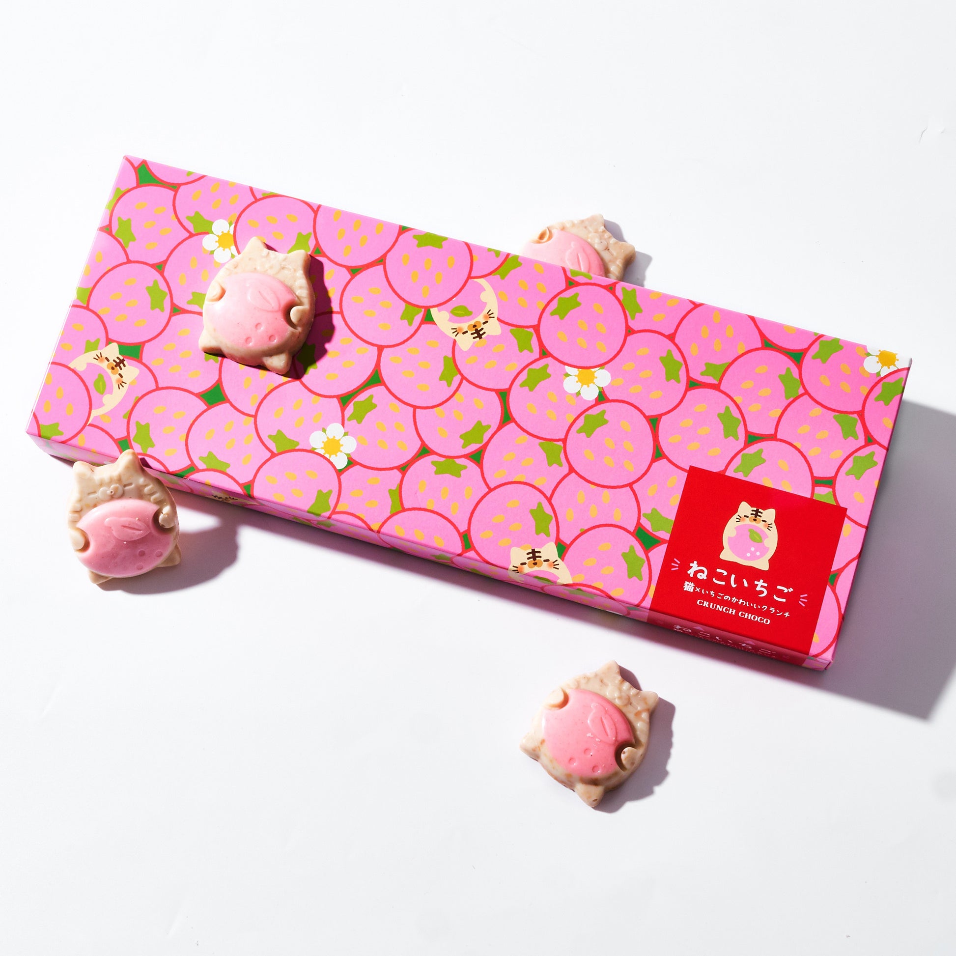 Savor the fresh flavors of locally-grown strawberries from Japan with these charming cat-shaped chocolates.
