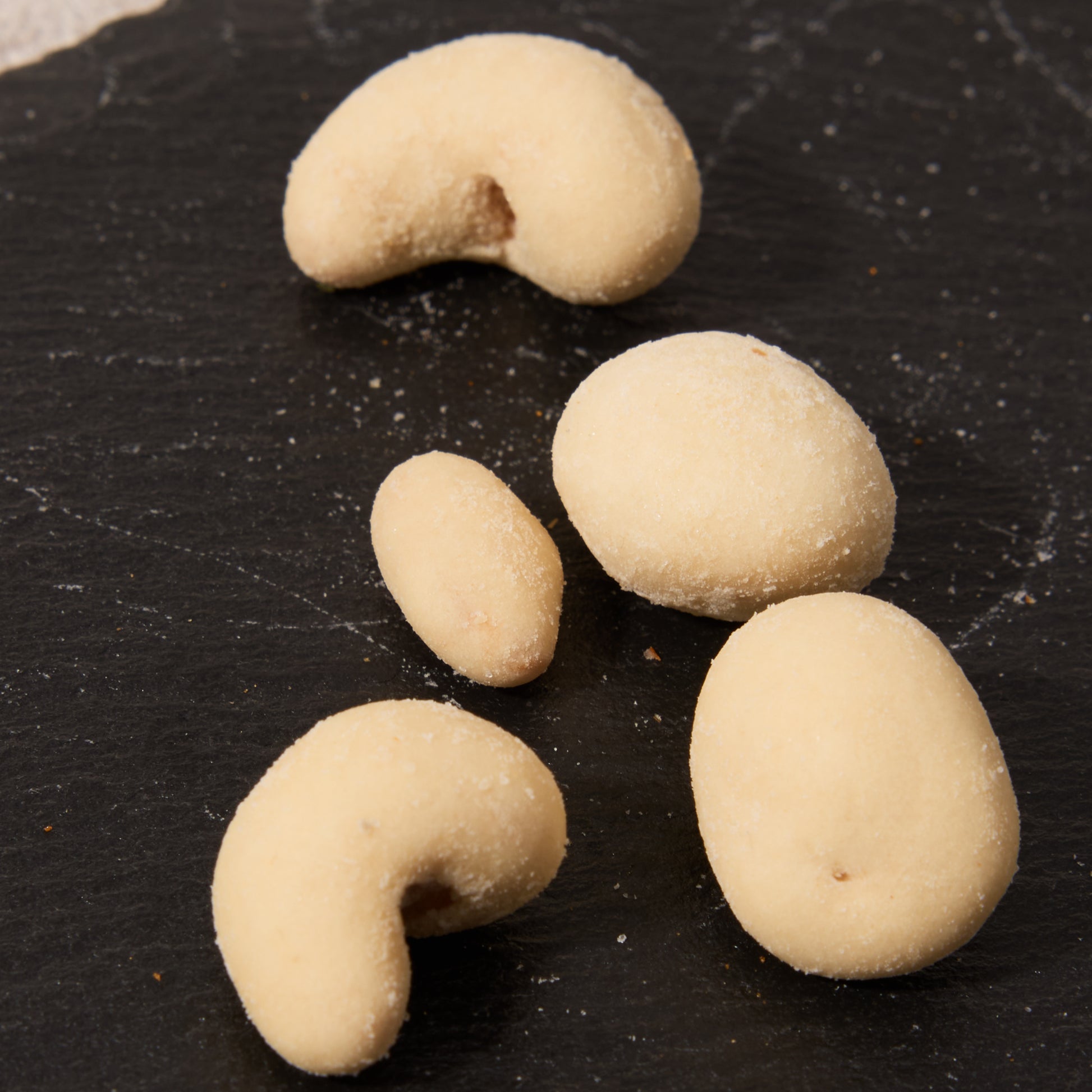 Crunchy cashew nuts are encased in a generous sugar coating and finished with a savory dusting of powdered cheese, creating a rich, indulgent snack. The combination of sweet, nutty, and cheesy flavors delivers a satisfying complexity in every bite, making these nuts a perfect treat for sharing or savoring as a decadent, on-the-go indulgence.