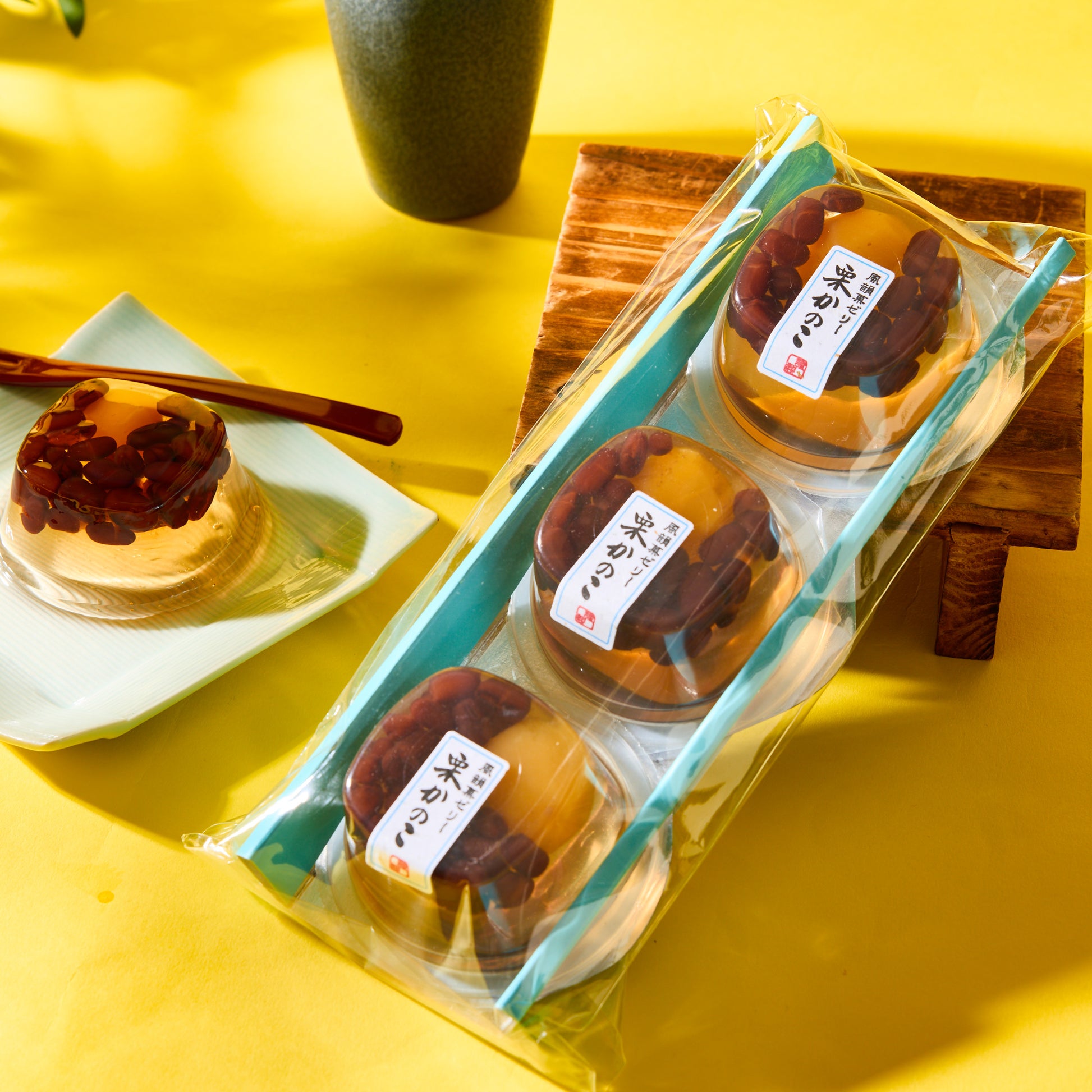 This jelly is made by Tsuruya Seika, a confectionery maker established in 1954, known for incorporating traditional Japanese flavors with creative presentation.