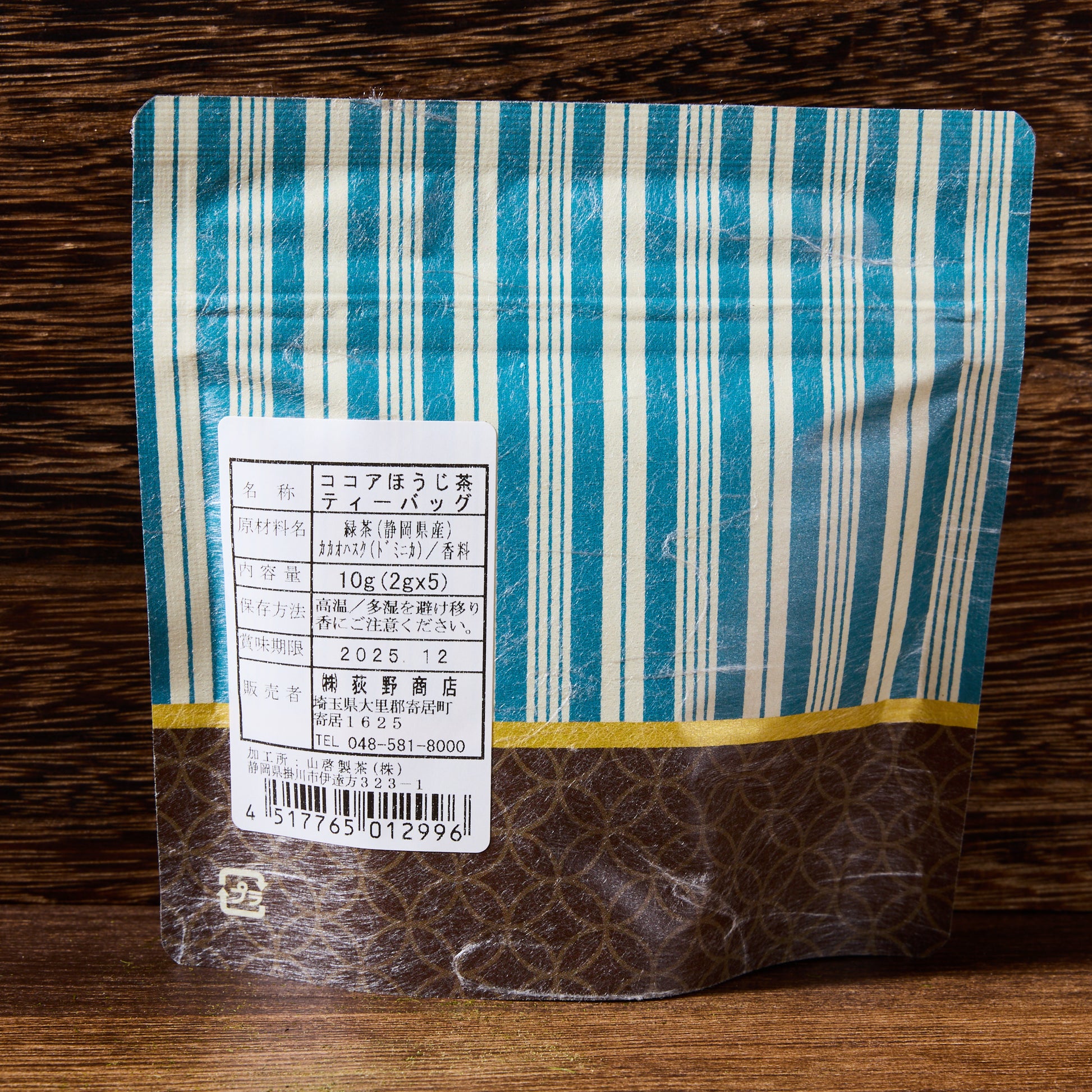 This unique blend pairs the warm, nutty aroma of premium first-harvest (ichibancha) hōjicha with a gentle infusion of cocoa, creating a comforting, full-bodied cup with a softly sweet finish. Roasted over high heat to reduce bitterness, the hōjicha’s smooth, toasty profile harmonizes beautifully with the mellow richness of cacao. Packaged in convenient stringed tea bags and a charming pouch, it's an ideal gift—or a quiet indulgence for yourself.