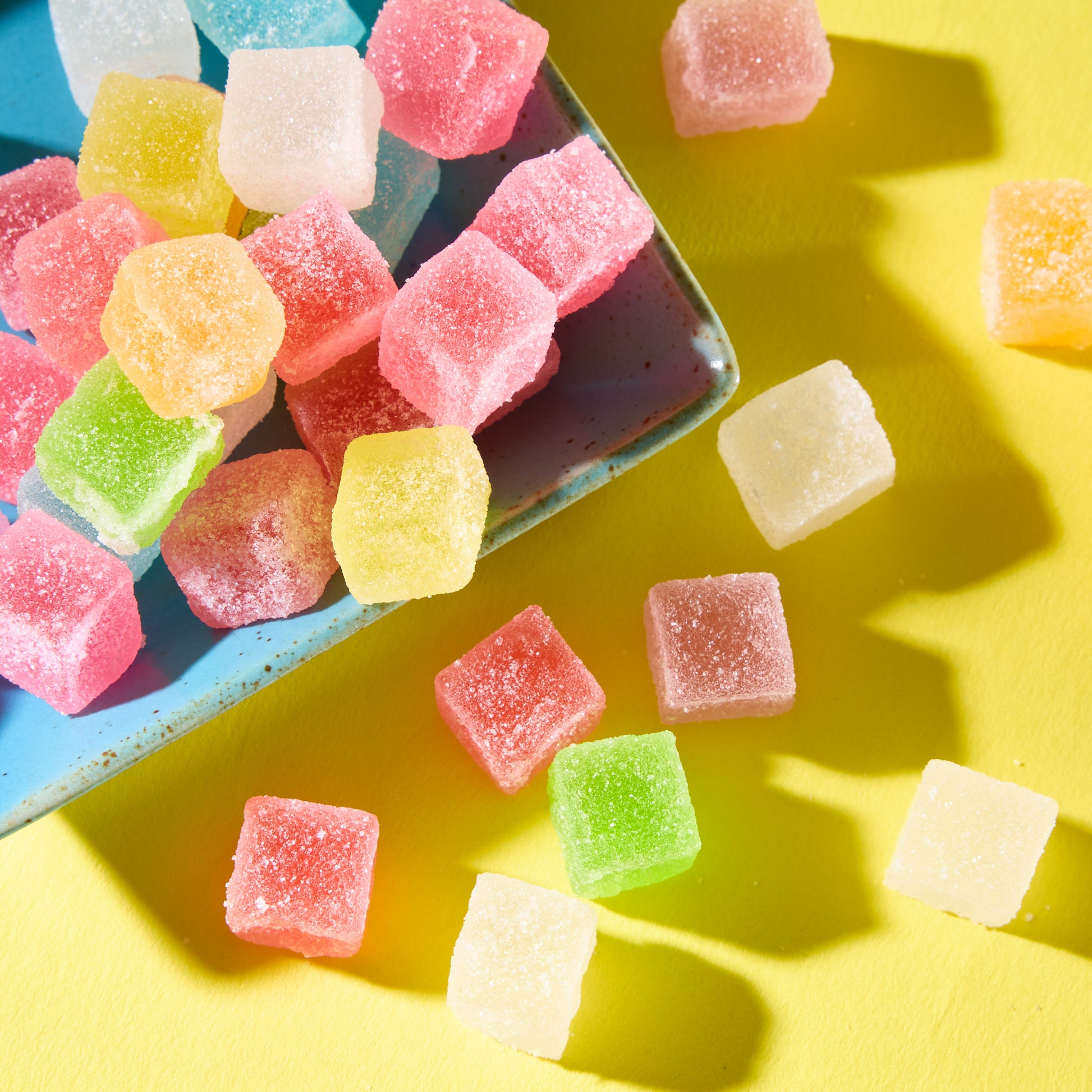 These colorful, bite-sized jellies offer a pleasantly chewy texture and a delicate, balanced sweetness.