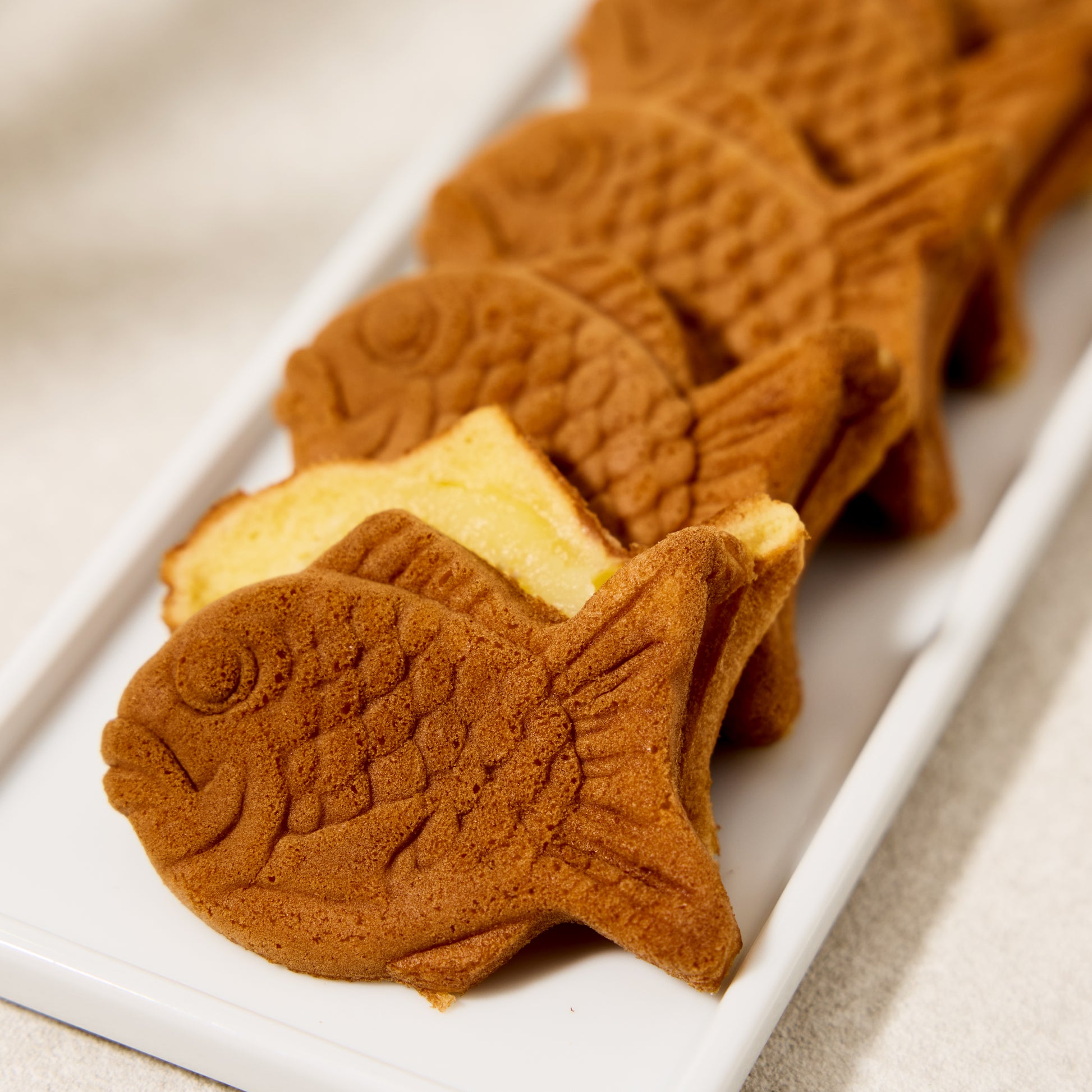 Shaped like a tai, or sea bream—a traditional symbol of good fortune and celebration—this taiyaki cake is as delightful to behold as it is to taste. Its soft, slightly chewy exterior gives way to a rich, velvety custard filling that is luxuriously smooth and subtly sweet. Perfect for festive occasions or a special treat any time, each taiyaki combines playful charm with indulgent flavor, making every bite a small celebration.