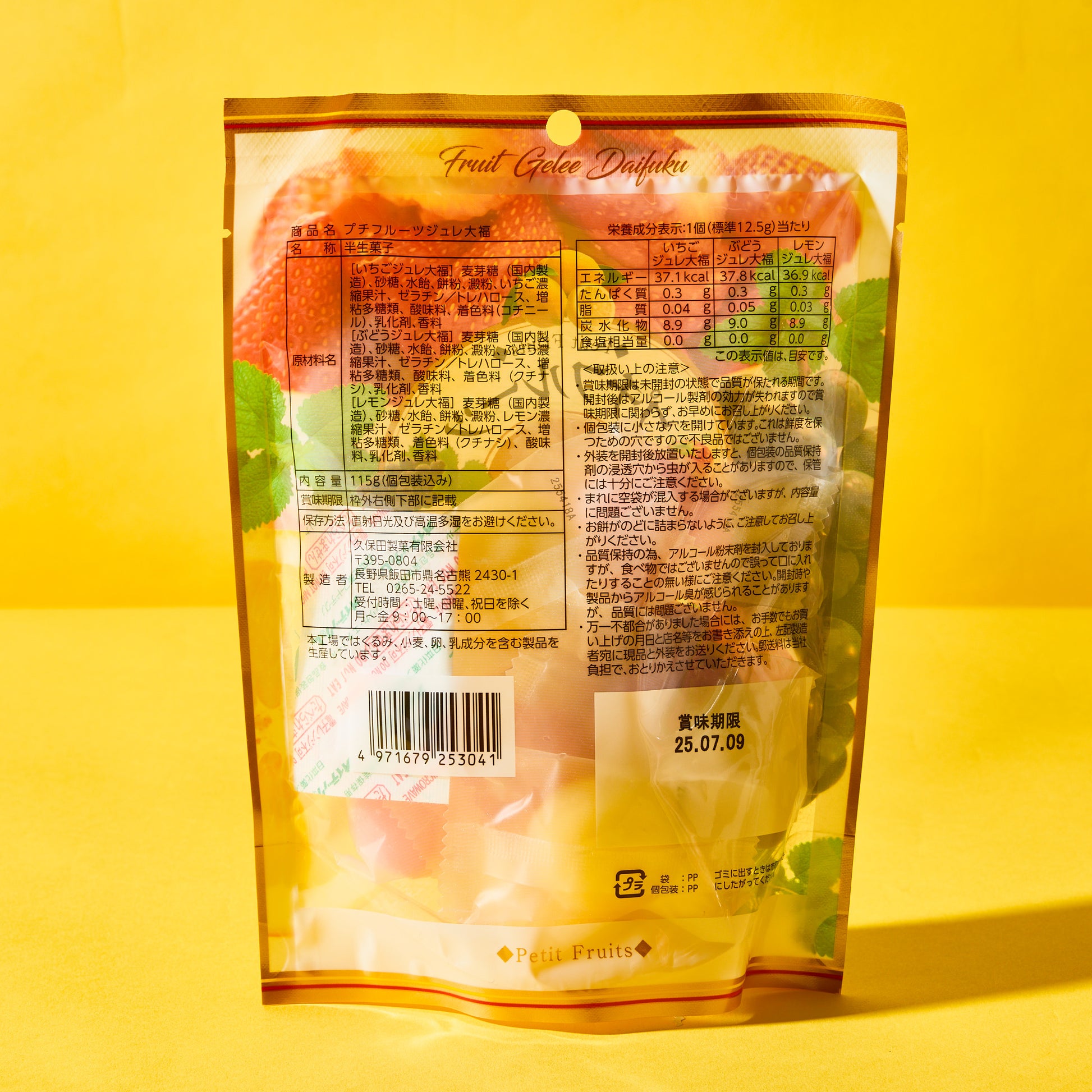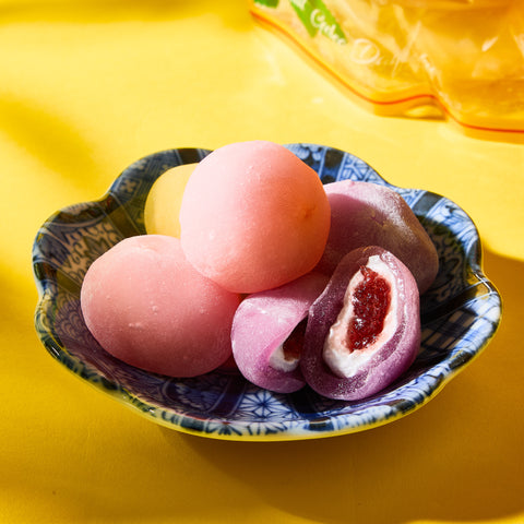 This assortment includes nine pieces, each filled with a sweet fruit jam in three vibrant flavors: strawberry, grape, and lemon. The delicate mochi wraps the luscious fruit filling, creating a perfect balance of texture and flavor in every bite. With each piece offering a refreshing and fruity twist, this assortment is a delightful way to experience the beloved tradition of daifuku in a new light.