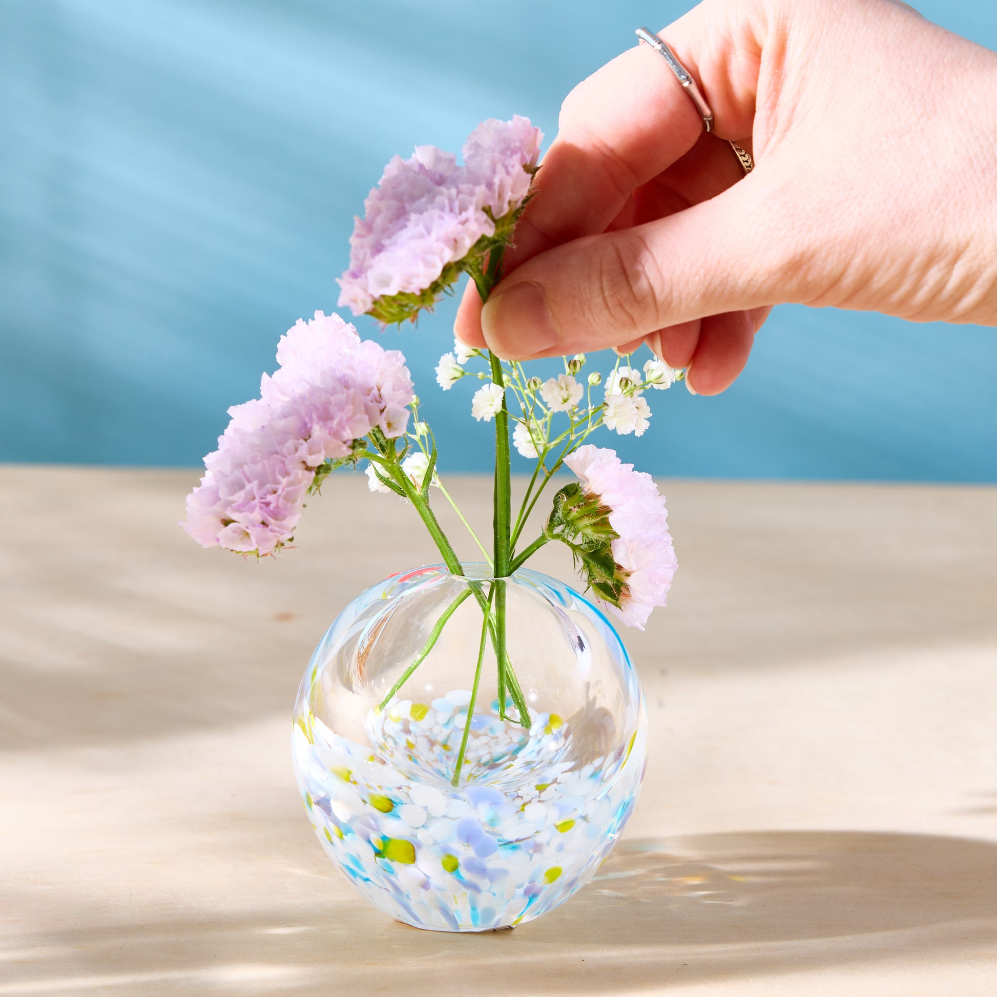 Compact yet eye-catching, it can be used as a single-stem vase, aroma diffuser, or decorative accent—bringing a refined touch to any space. Part of the Iro Temari (手鞠) series, the design takes inspiration from traditional temari—colorful embroidered balls—echoing the vivid patterns and changing palettes of the seasons.