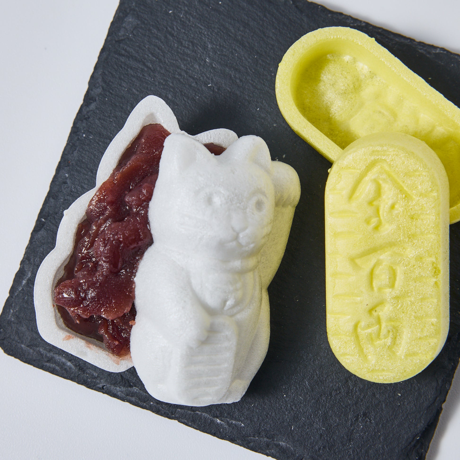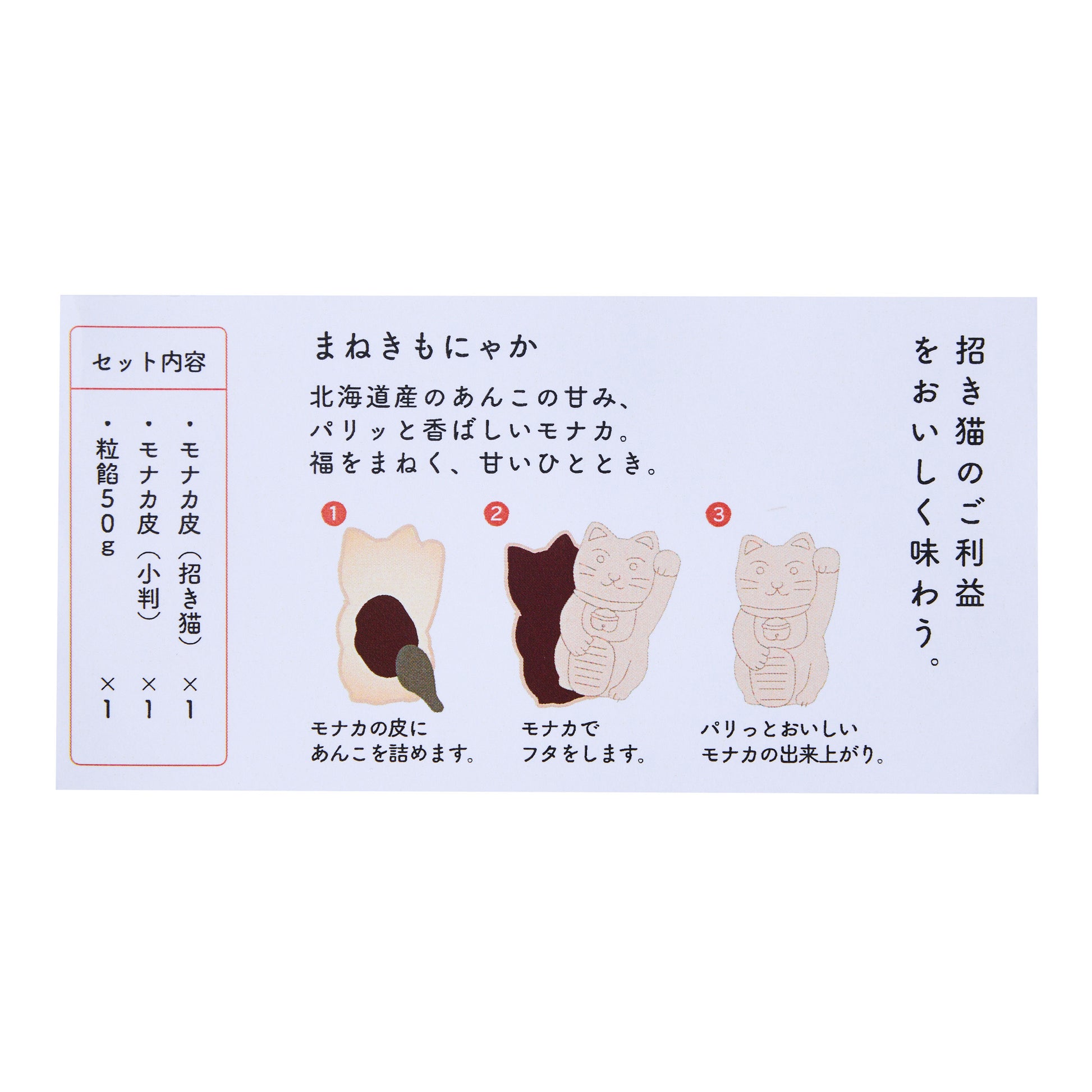 Monaka is a classic confection made with crisp, delicate wafers and sweet red bean paste, and this set includes features wafers shaped like an oval gold coin and a maneki neko (beckoning cat).