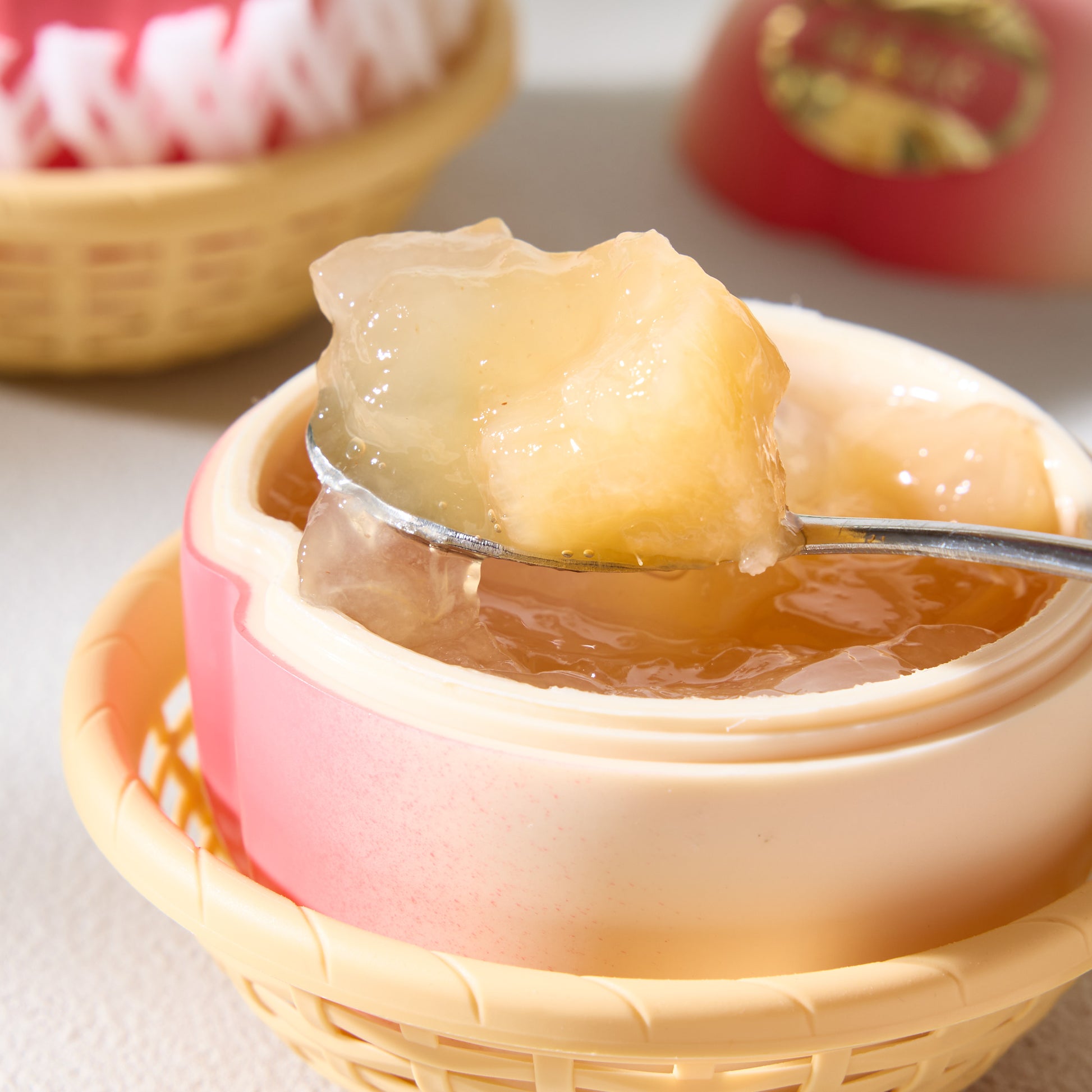 Immerse yourself in the luscious texture and delectable taste of this premium white peach jelly, a true testament to the allure of Japanese fruits!