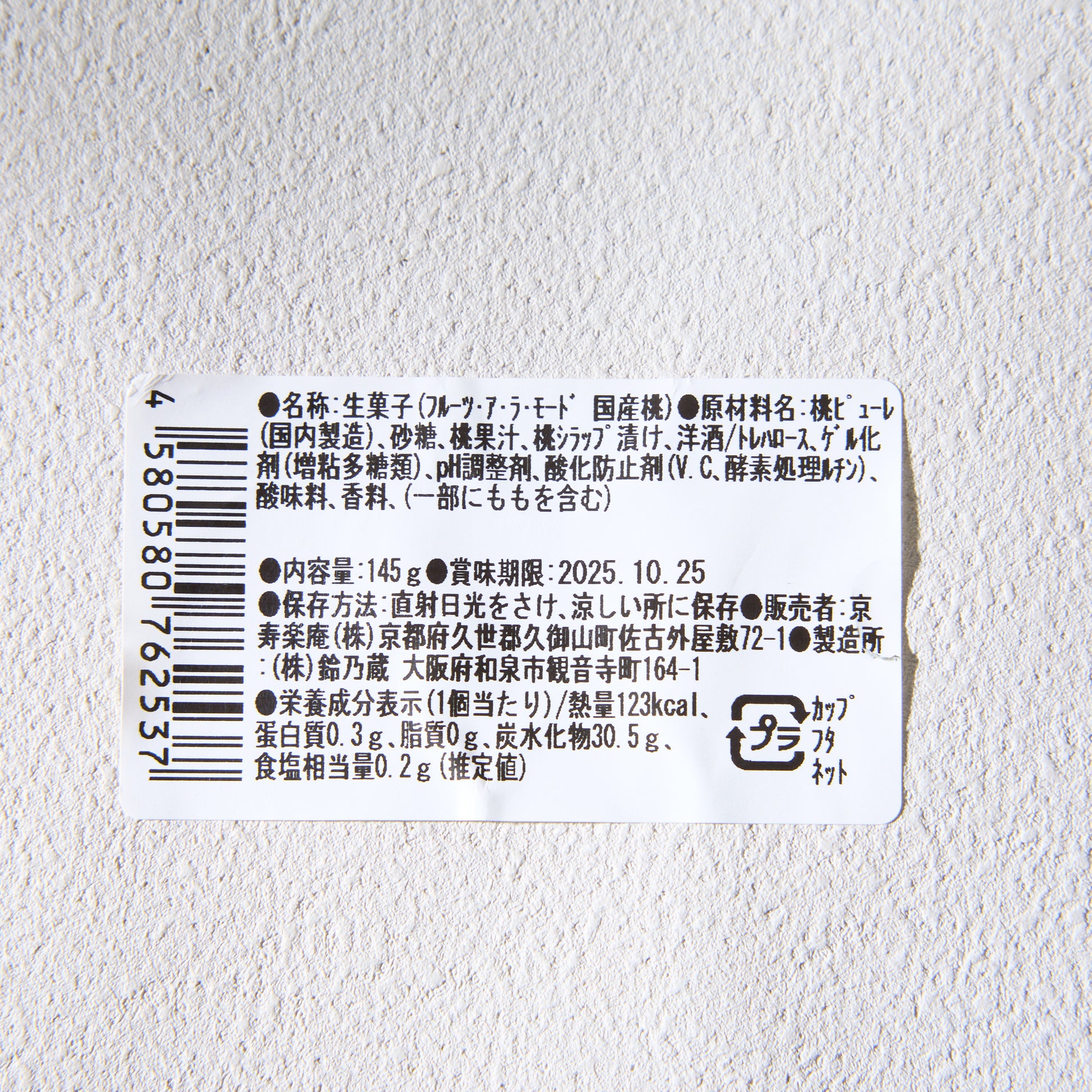 Indulge in the delightful Fruits a la Mode Japanese White Peach jelly, presented in an adorable fruit-shaped container.
