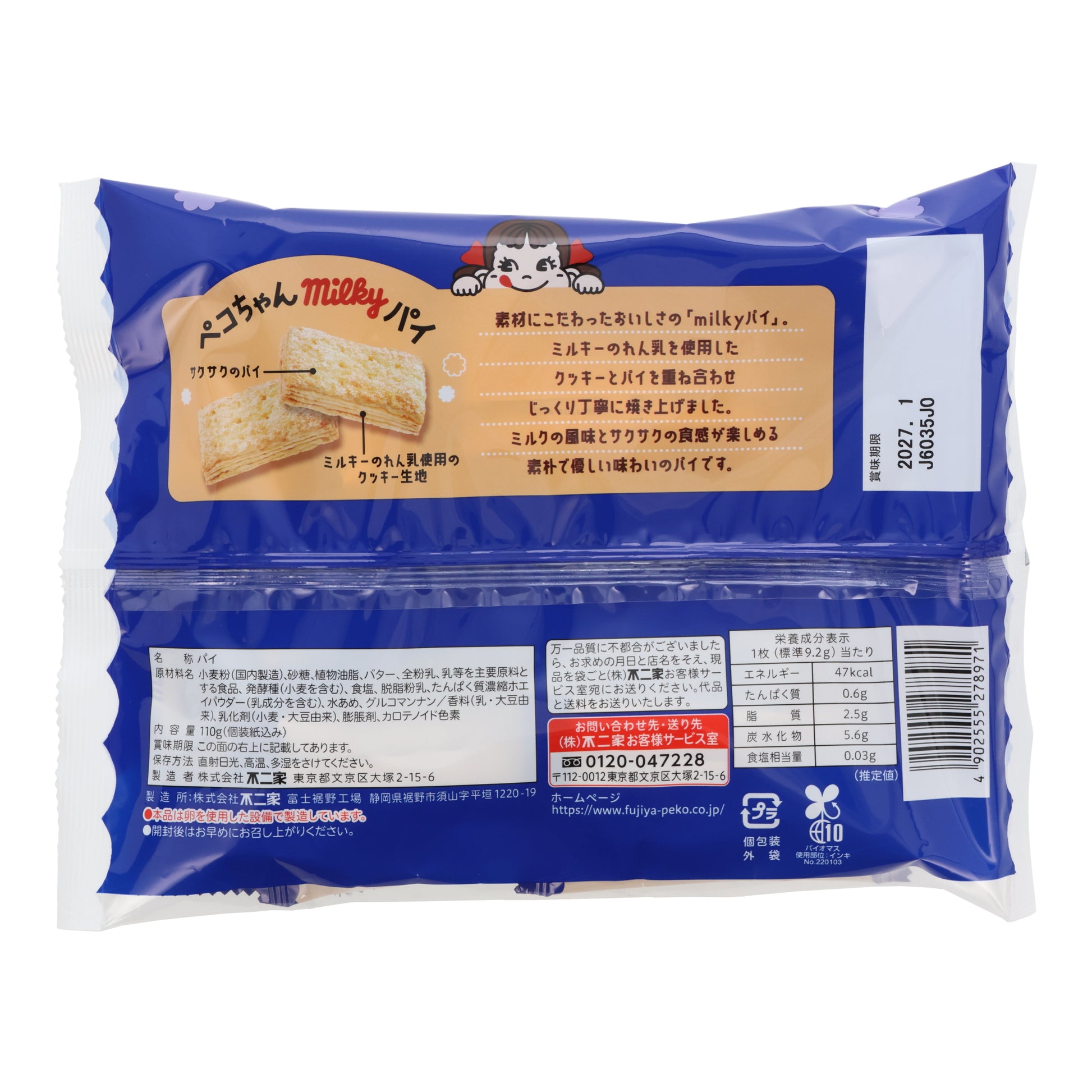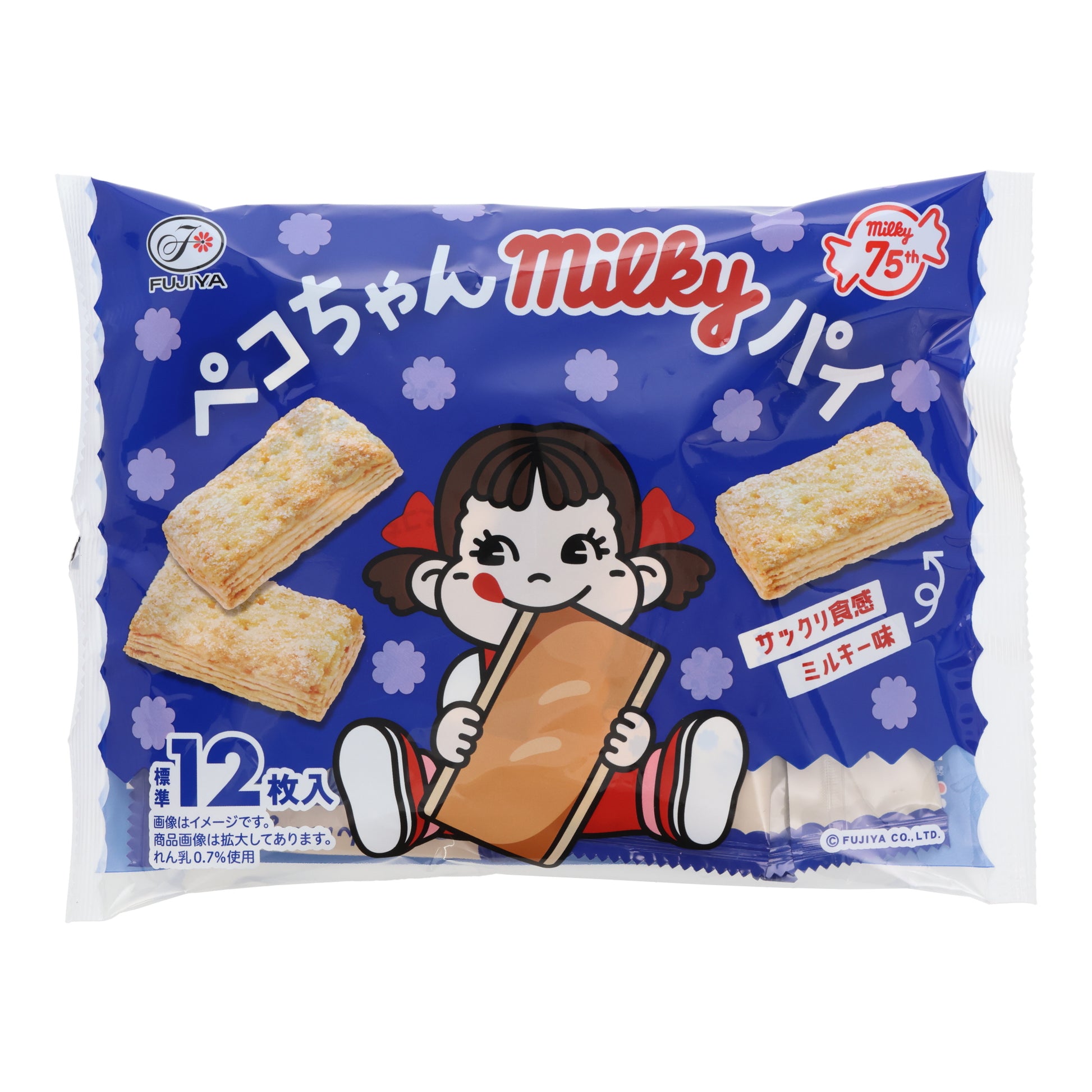 Delight in a comforting classic with Fujiya Peko-chan Milky Pie Cookie, a sweet treat crafted with carefully selected ingredients for a simple yet satisfying flavor. Layers of Milky condensed milk cookies and delicate pie pastry are stacked together and carefully baked to create a light, crispy texture with every bite. The result is a gentle, creamy milky taste that melts pleasantly on the palate while offering a delicate crunch, making it a charming and easy-to-enjoy snack for fans of Fujiya’s beloved Milky flavor.