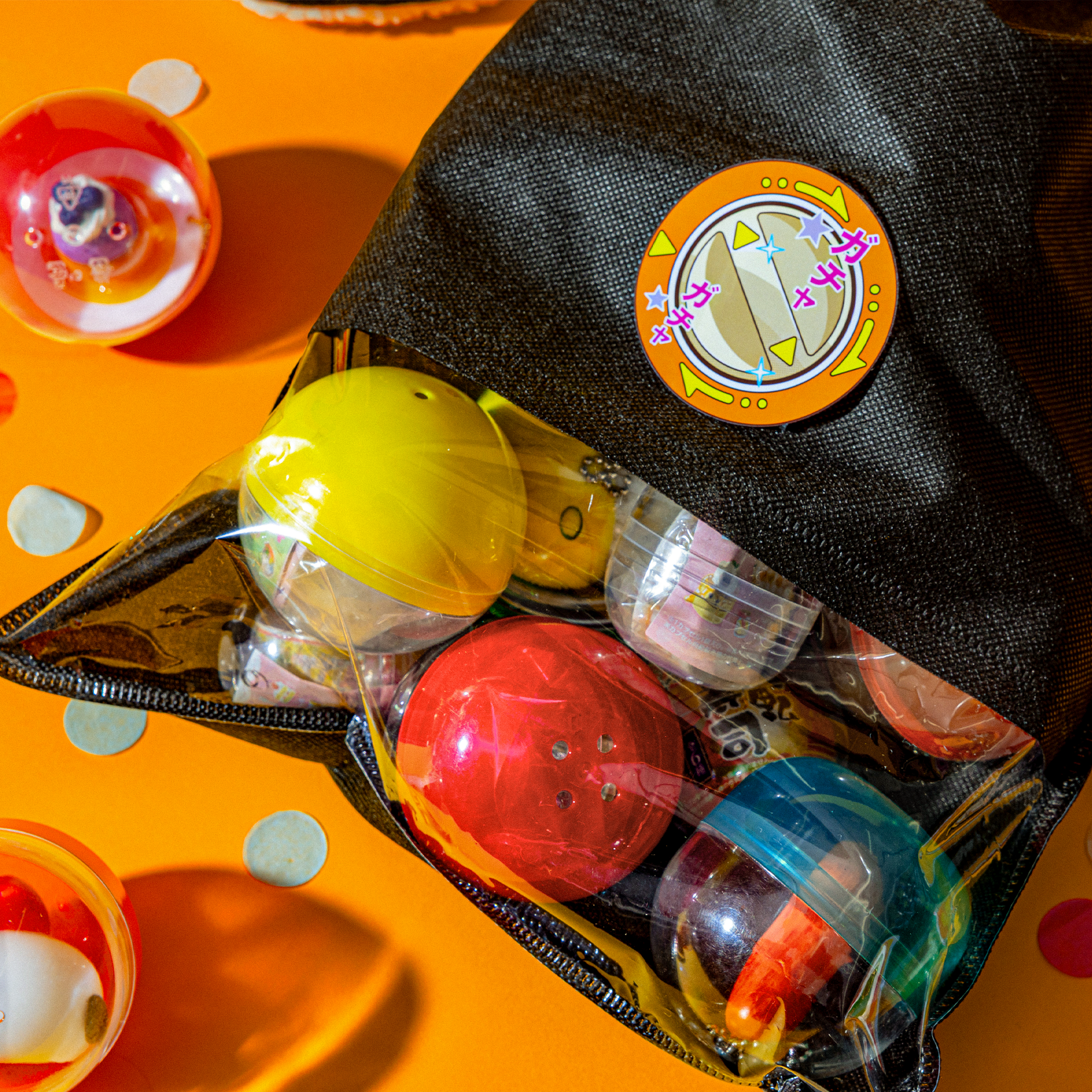 The fun never stops! Even the bag itself looks like a Gacha machine, making it a perfect keepsake for collectors and Gacha lovers alike.