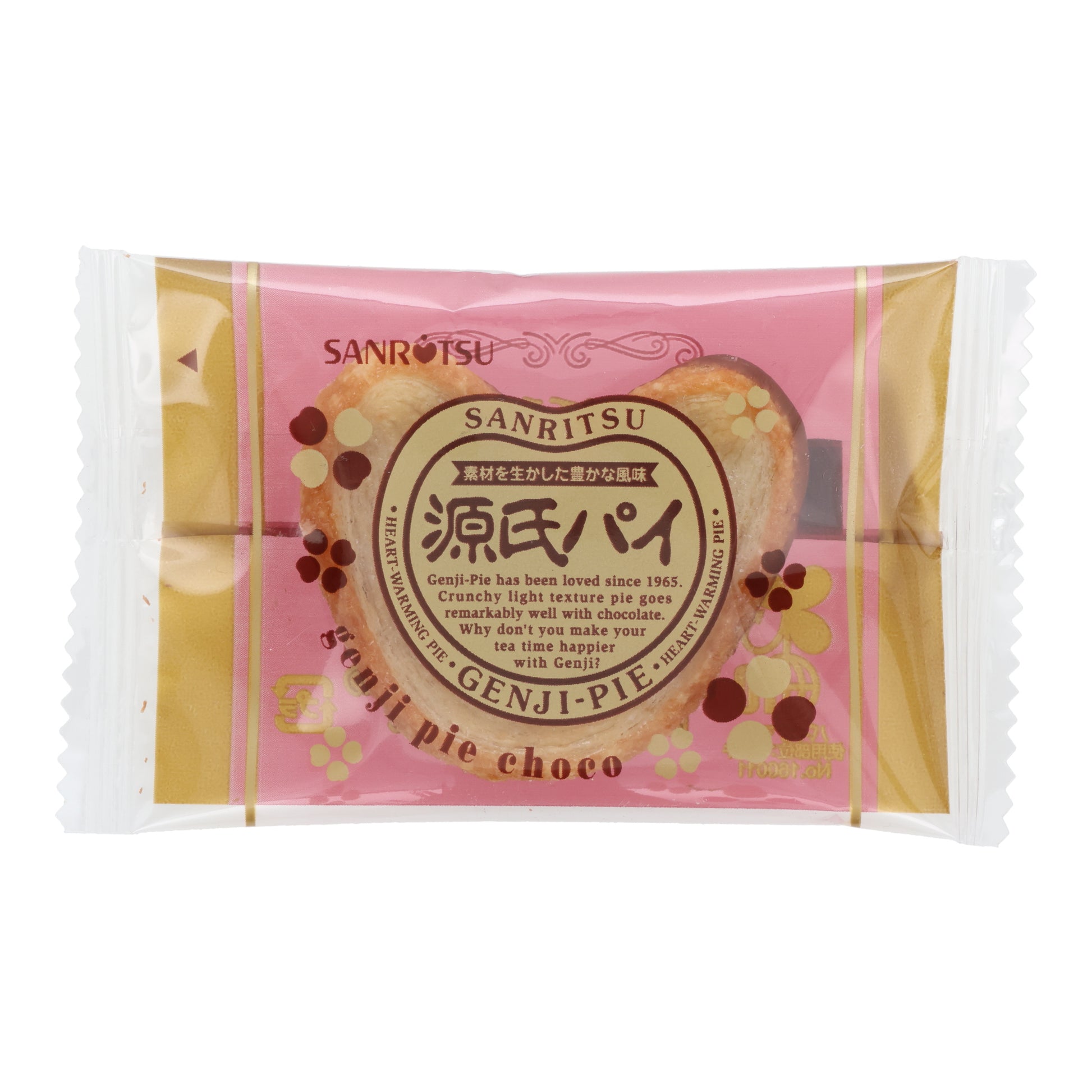 Genji Chocolate Pie is a light, fluffy pastry made with multiple layers of flaky pie crust. It has a gentle chocolate flavor that adds a touch of sweetness without being too rich. Crisp on the outside and soft inside, this treat is easy to enjoy as a simple snack any time of day.