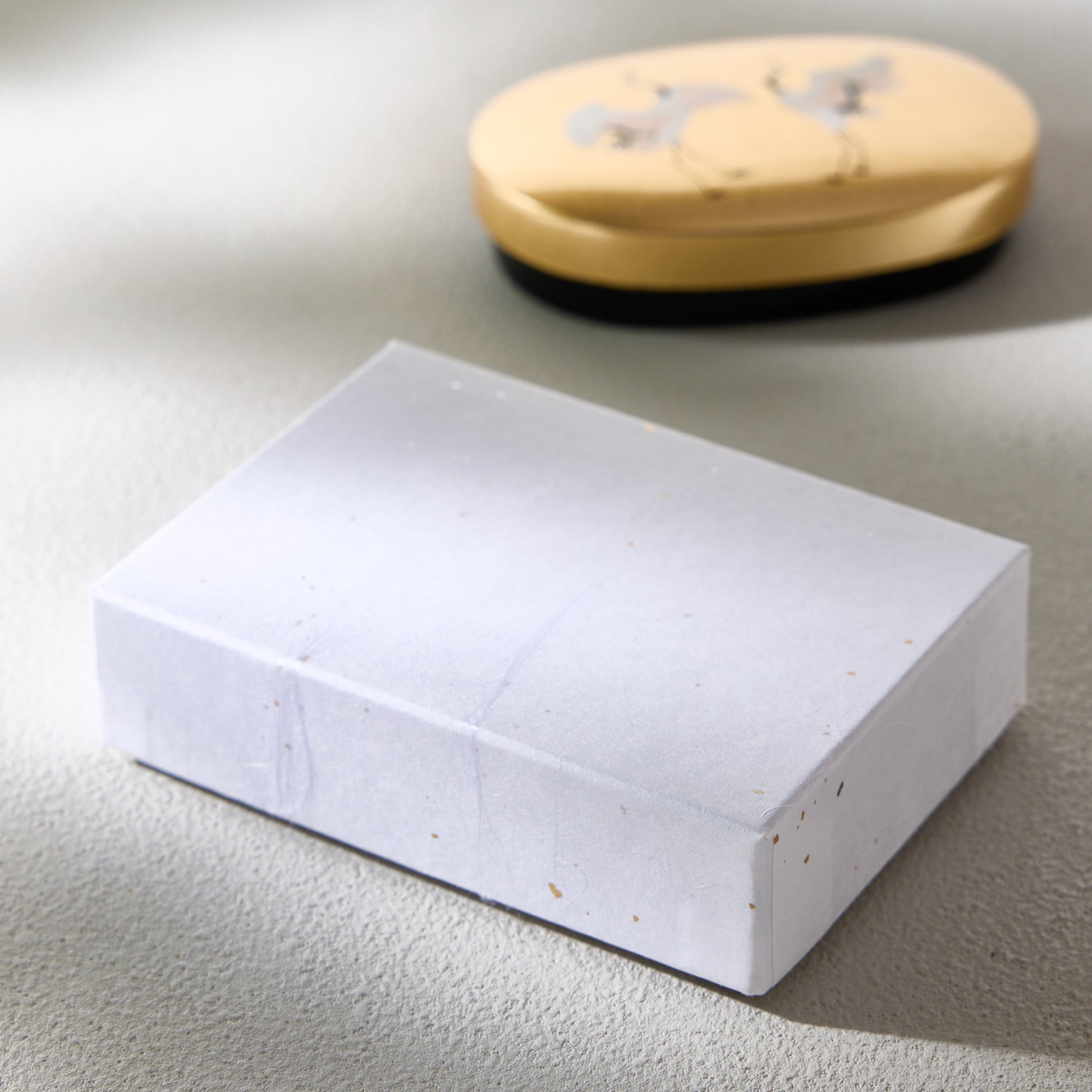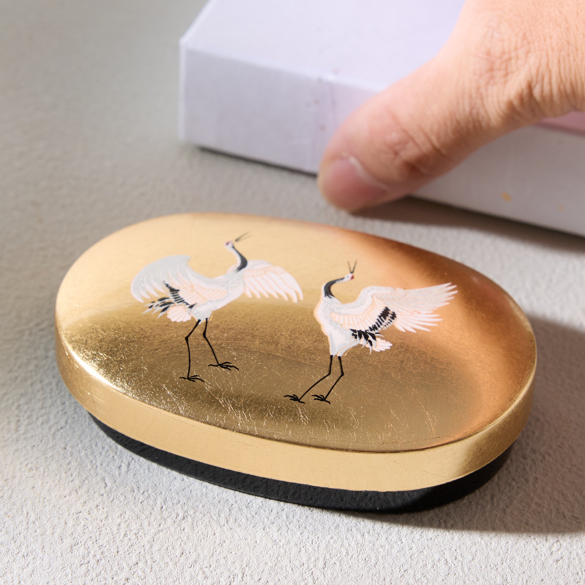 Elevate your accessory collection with the opulent Gold Leaf Accessory Case adorned with a Crane motif.
