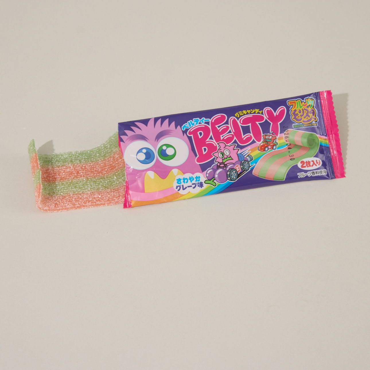Add a burst of fruity flavor to your snack lineup with these grape-flavored rainbow belts.