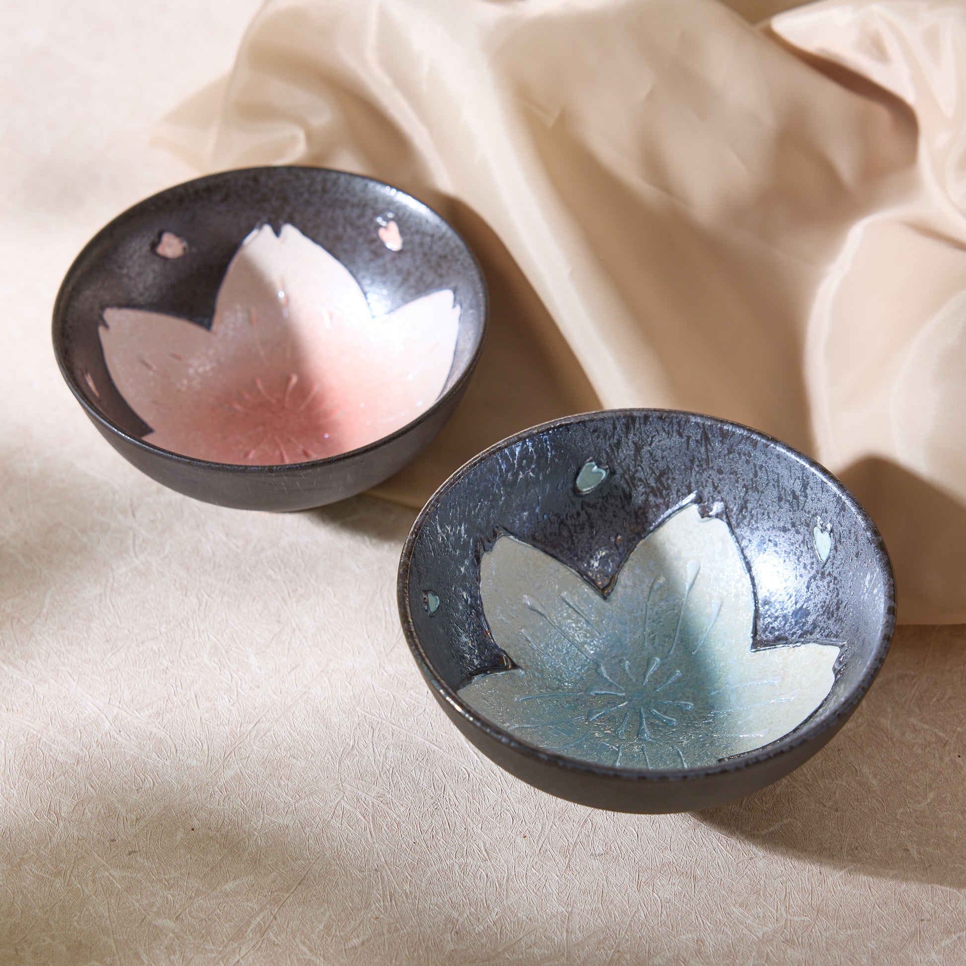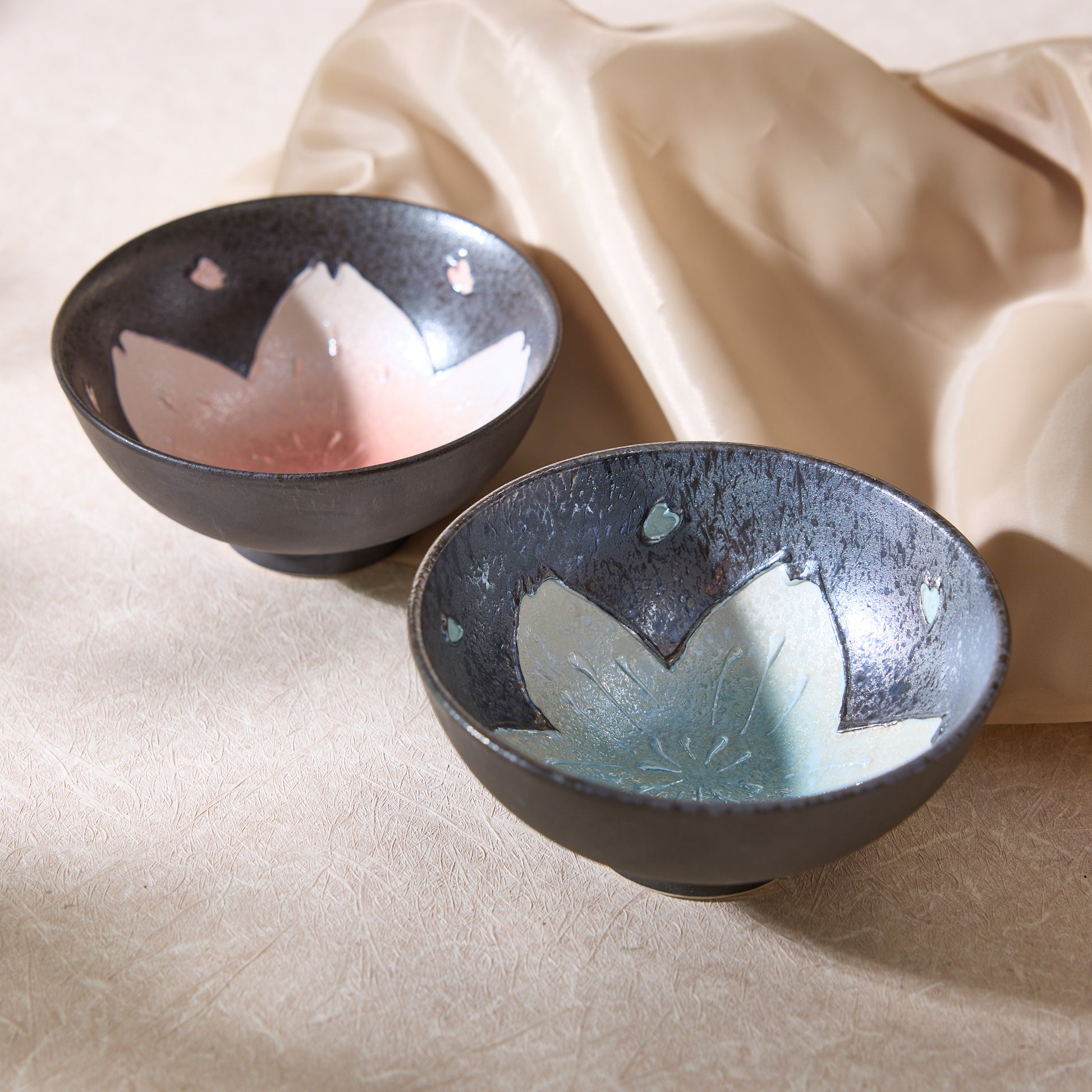The soft colored glaze is applied over a dark black base and finished with a lustrous coating, giving each bowl a gentle shine.