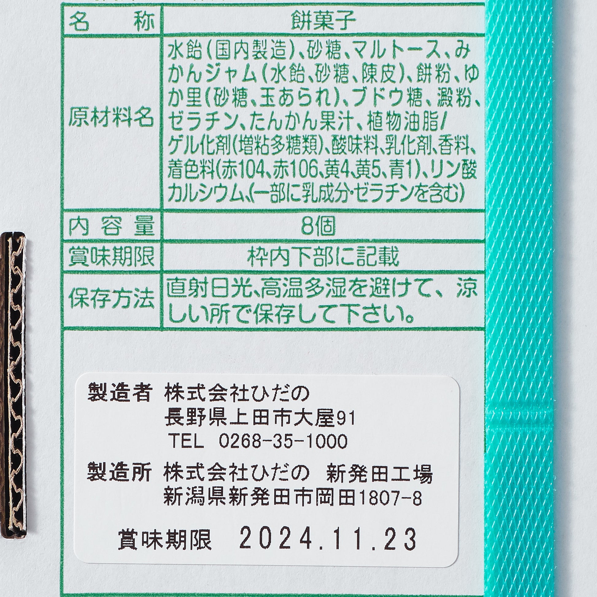 Each of the 8 pieces inside are filled with a luscious mikan jam and soft marshmallow center, offering a perfect balance of sweetness and tang. Shaped like a tiny mikan and finished with a delicate sugary base, this exquisite wagashi delivers both playful nostalgia and refined indulgence. Packed in a retro-style box reminiscent of traditional mikan crates, it’s a treat as delightful to gift as it is to enjoy.