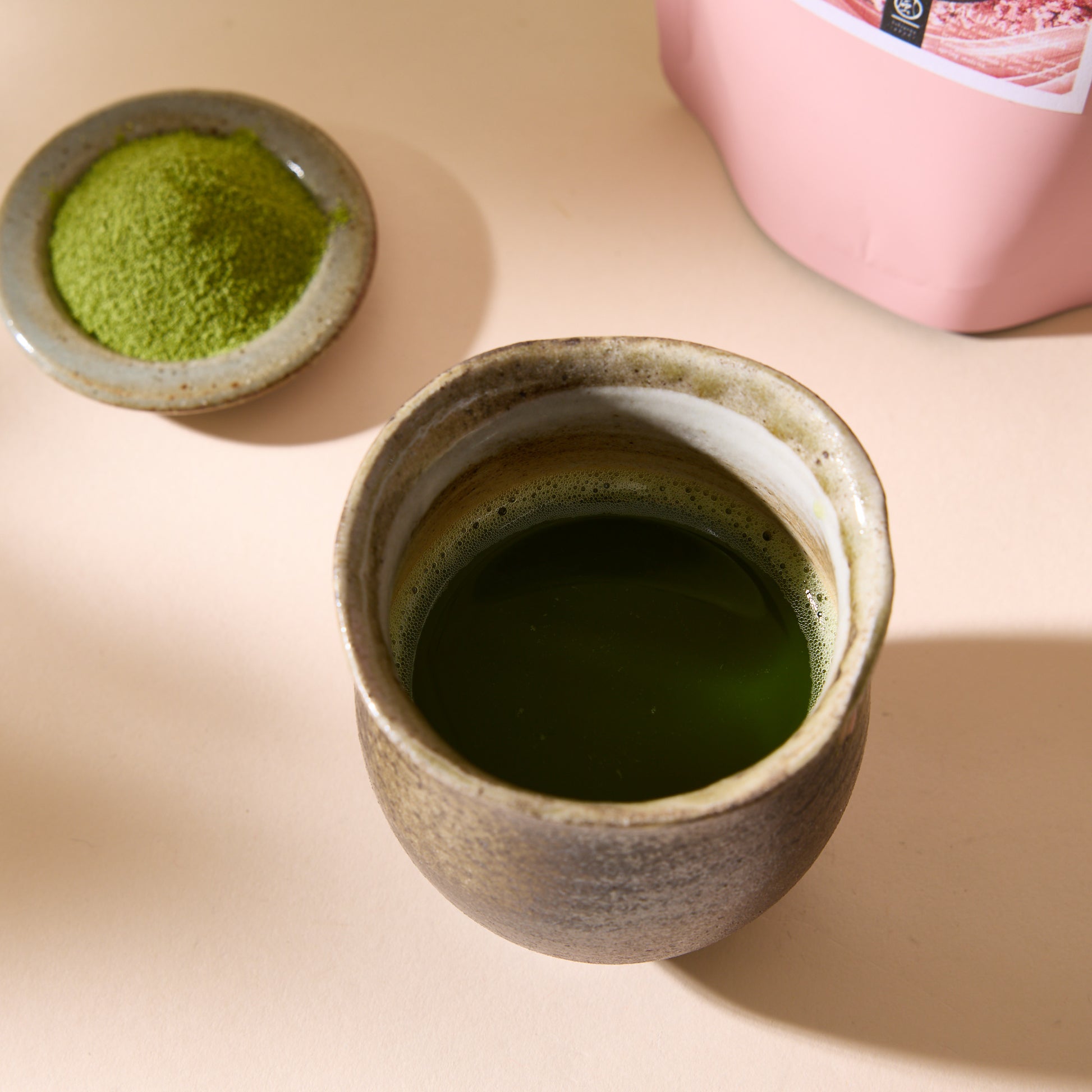 This matcha from Shizuoka Prefecture—renowned for its green tea and matcha production—is infused with the delicate flavor of cherry blossoms.