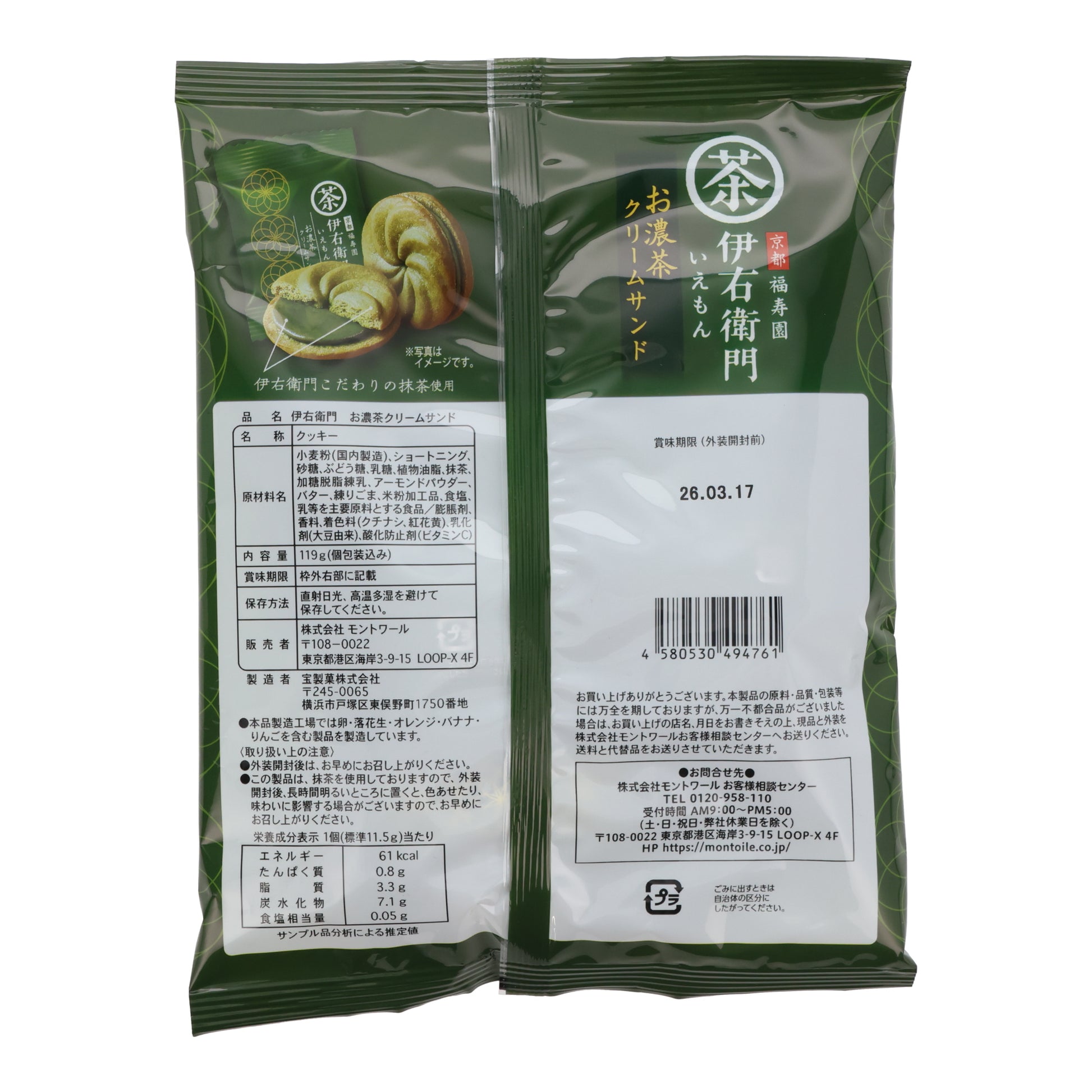 The cookie dough is kneaded with carefully selected matcha from Iyemon, a renowned Japanese tea brand, then baked to a crisp perfection. The smooth matcha cream in the center complements the lightly sweet cookies.