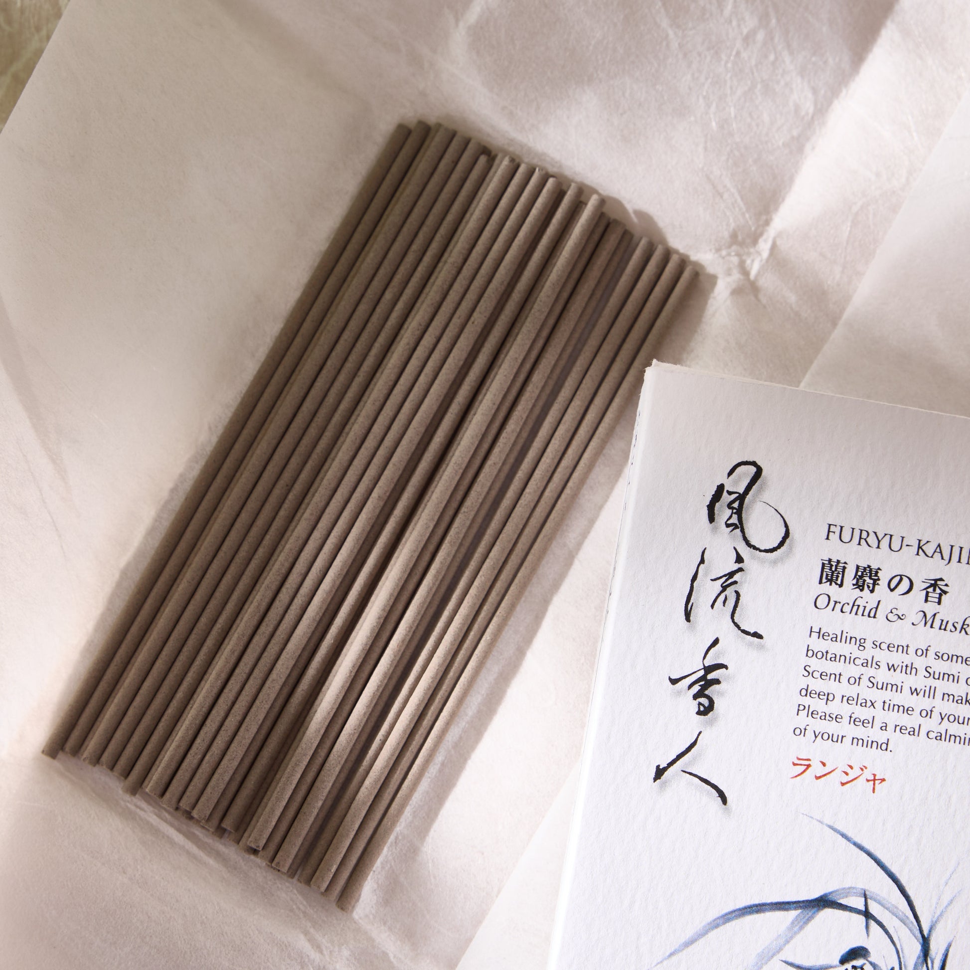 Part of the Furyu Kohjin incense series, this variation pairs the distinctive scent of sumi with complementary botanical notes for a soothing, meditative experience.