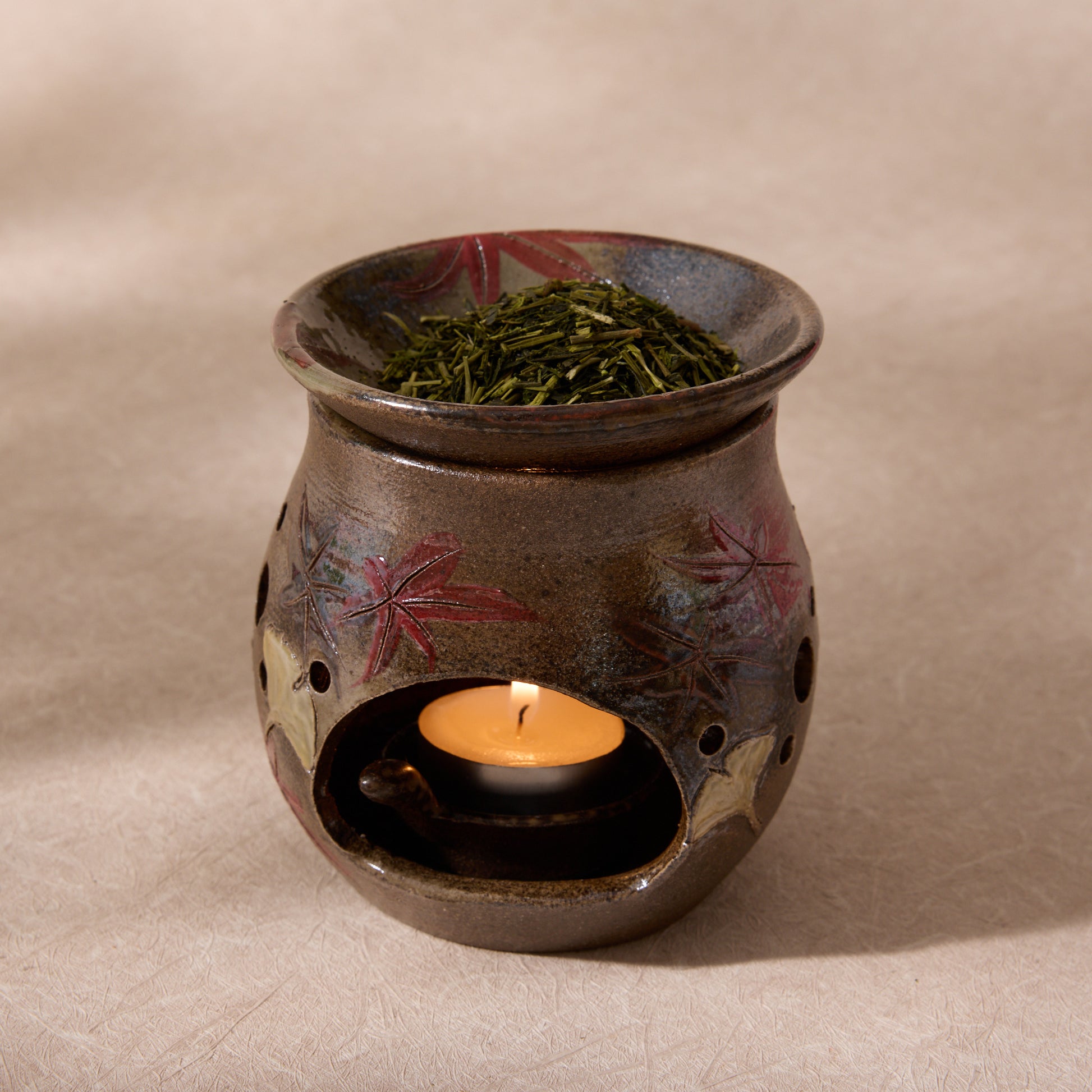 As the tea warms, its aroma unfolds gradually—clean, soothing, and subtly toasty—evoking the tranquility of a tea room without the need to brew a cup. To enjoy it fully, pair the incense leaves with a tea incense burner and a small aroma candle, allowing the gentle heat to coax out the fragrance.