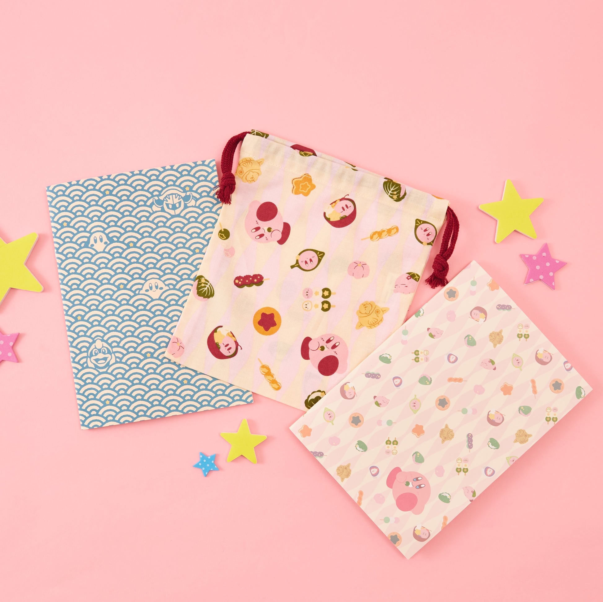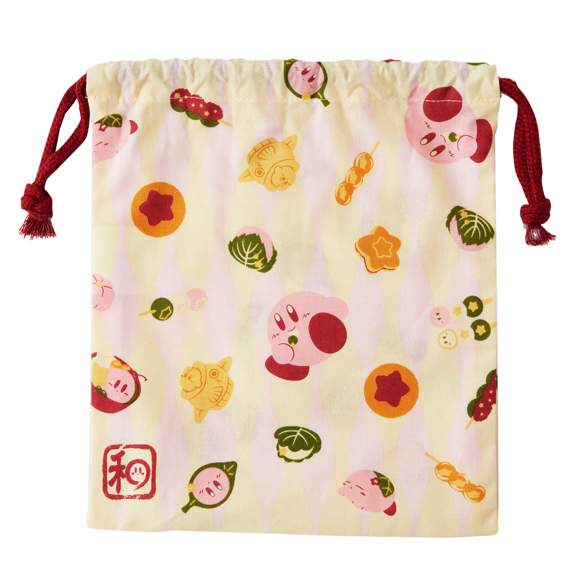 The Japanese sweets pattern, which is also used as a drawstring purse, is very cute with Kirby eating dumplings!