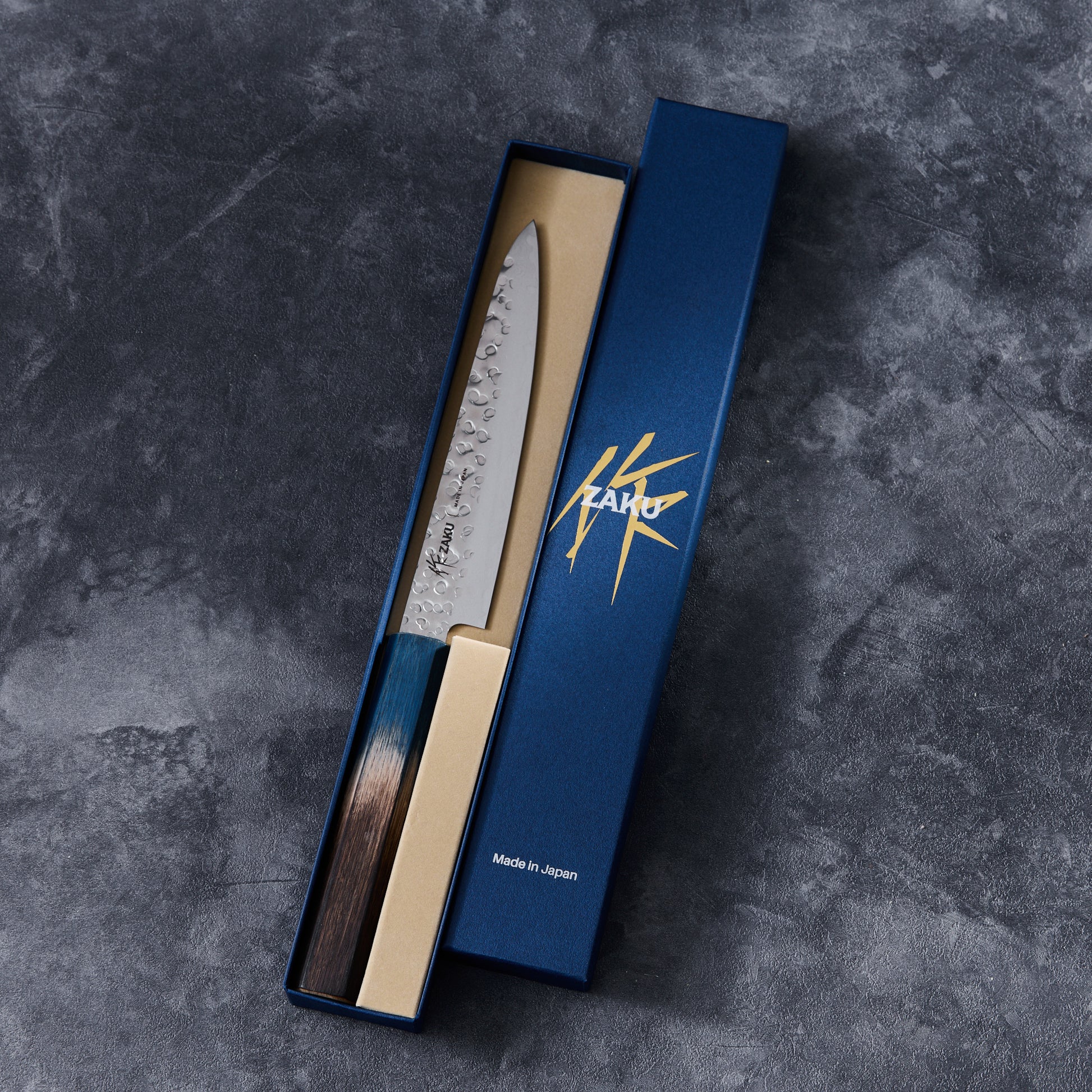 The ZAKU Akatsuki Petty Knife is a precision-crafted utility kitchen knife designed for precision and control in every slice. Its compact blade makes it ideal for detailed tasks such as peeling, trimming, dicing, and mincing, offering a higher level of agility. The razor-sharp edge delivers clean, effortless cuts, while the blade’s thin profile allows for delicate, accurate work on smaller ingredients like herbs, garlic, and fruit.