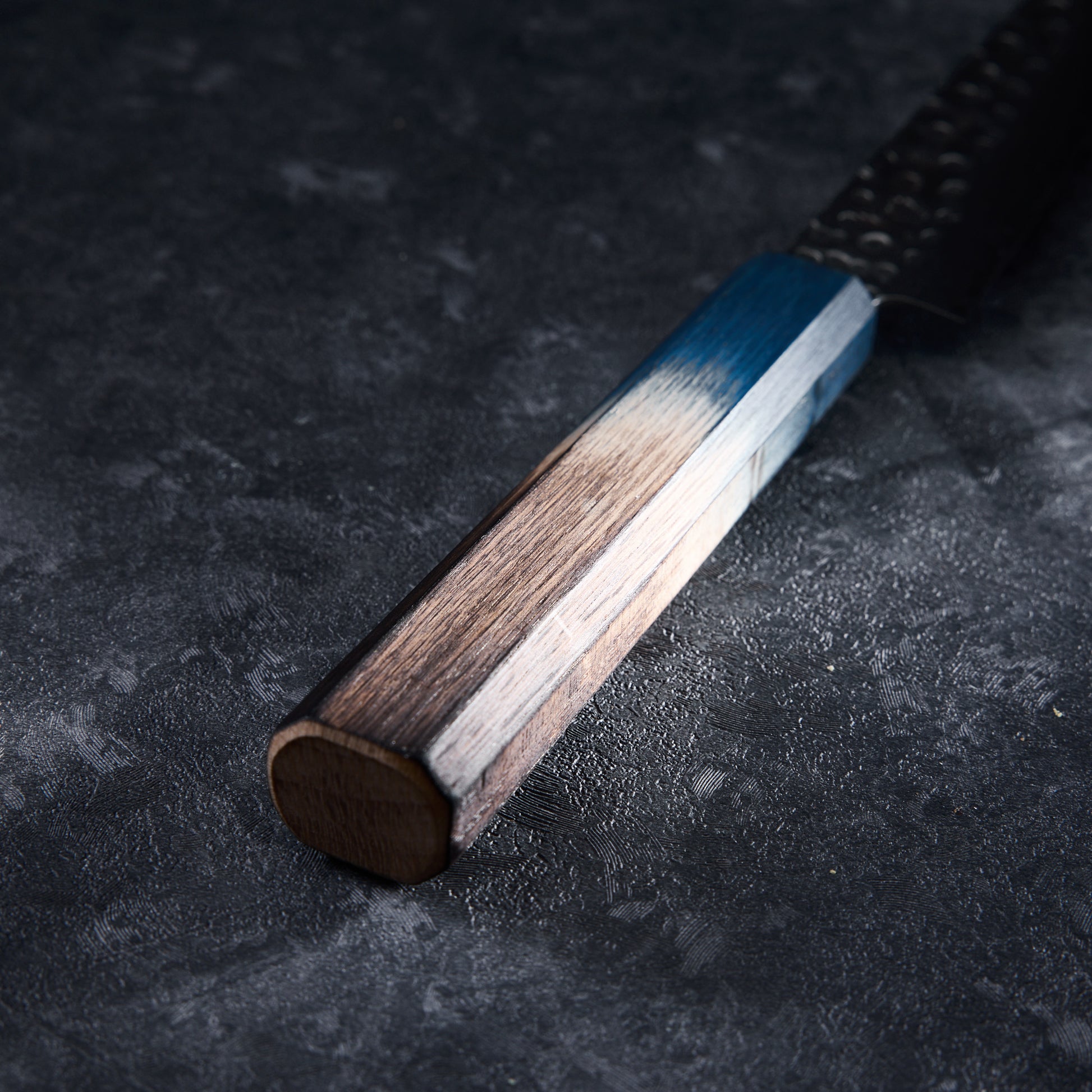 Shape: The octagonal shape of the handle is modeled after traditional Japanese kitchen knife styles. Making it non-slip and comfortable to use for extended time. The unique shape also makes this knife ideal for ambidextrous use.
