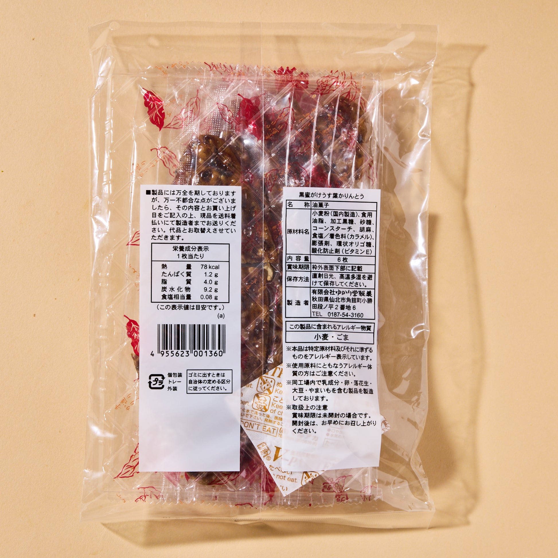 Let the rich flavor of Okinawan brown sugar take center stage in this refined take on a classic snack. Karinto is a traditional Japanese deep-fried wheat confection, typically coated in syrup. Each piece is delicately shaped like a leaf and fried to a crisp finish. The dough is blended with sesame and coated in a gently sweet kokuto brown sugar syrup.