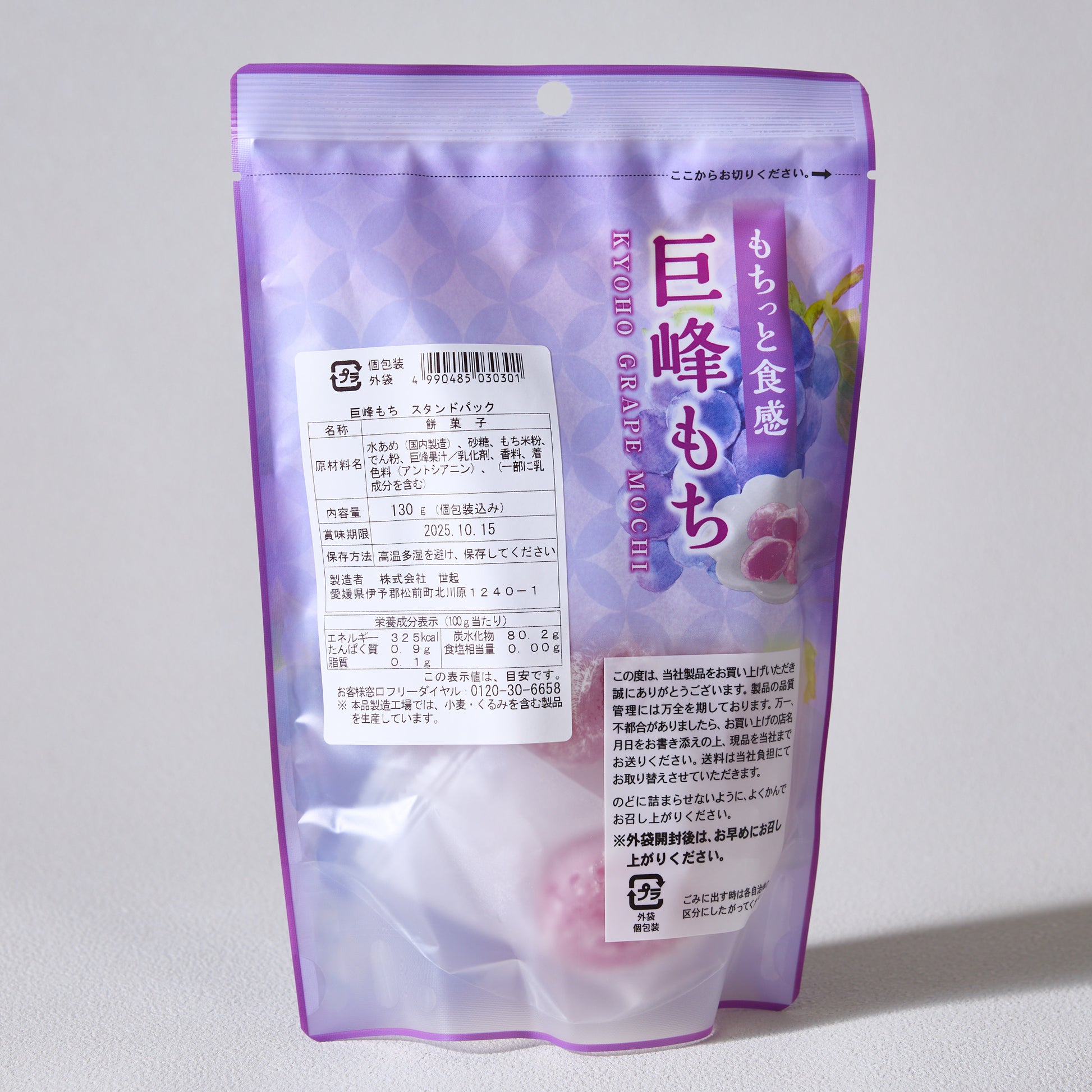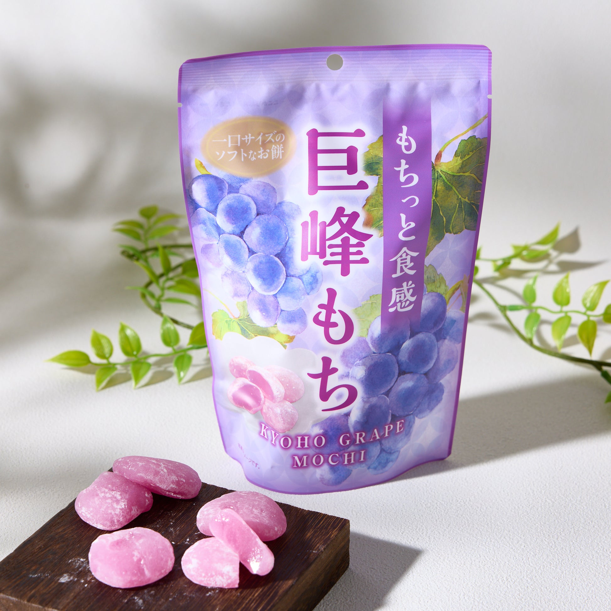 This fruity mochi combines the classic chew of Japanese mochi with the sweet, juicy flavor of Kyoho grapes—a premium variety in Japan known for their large size and rich, wine-like taste.
