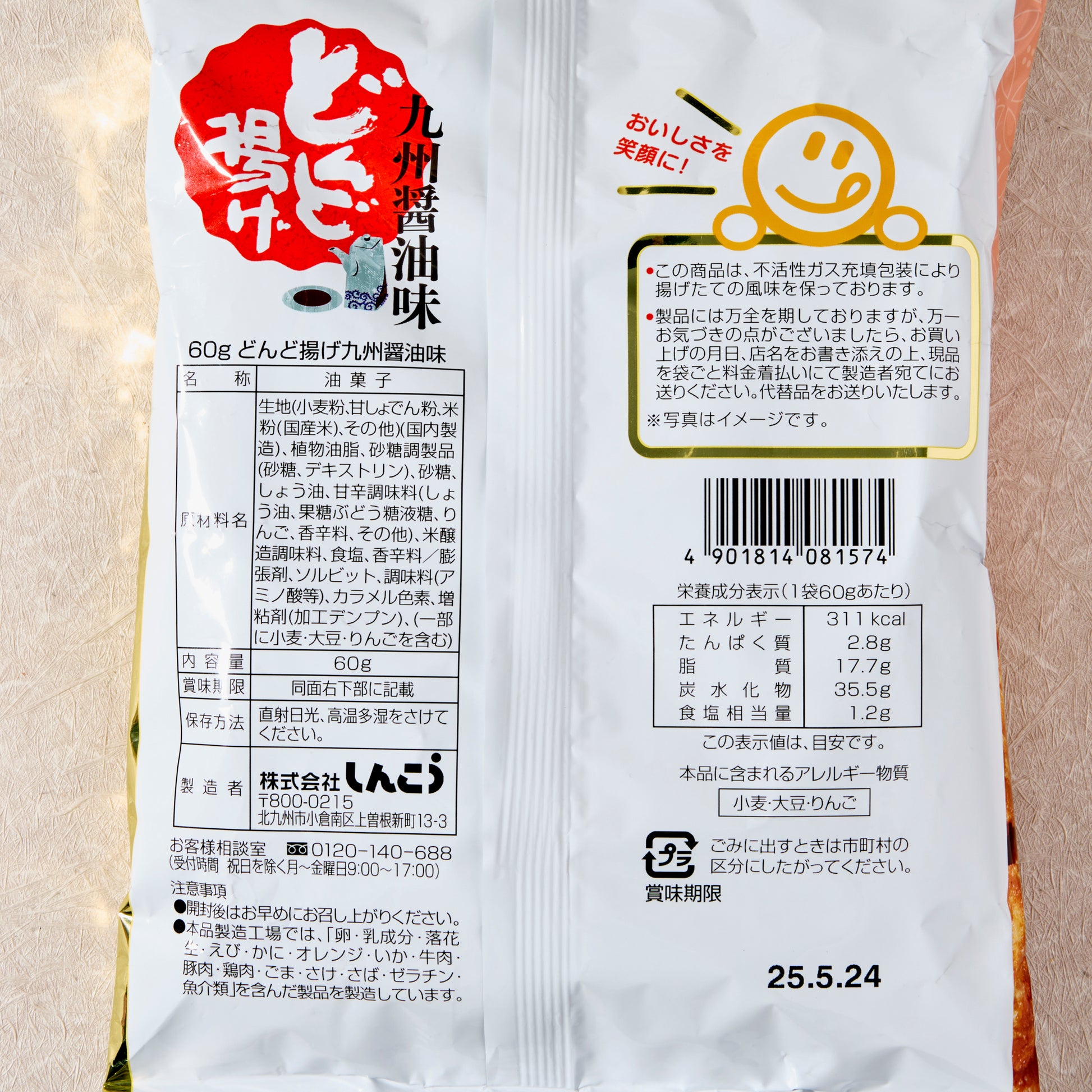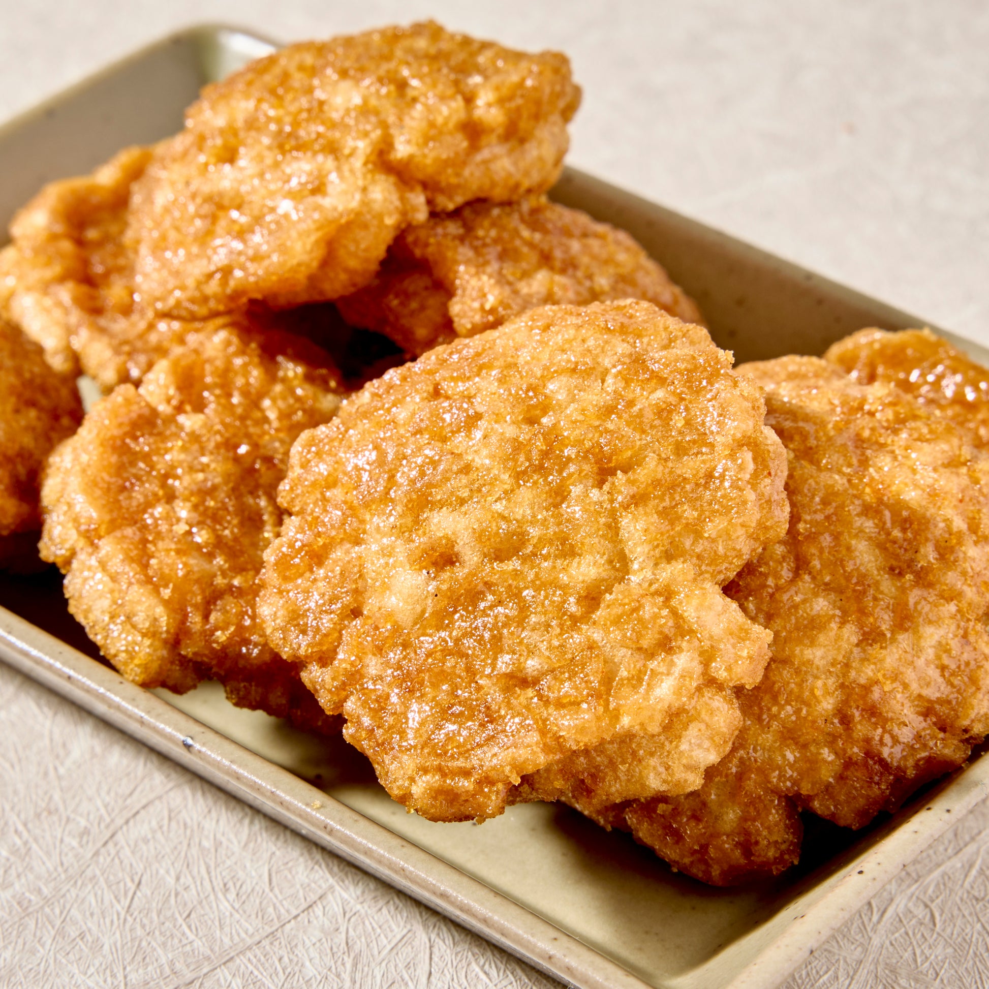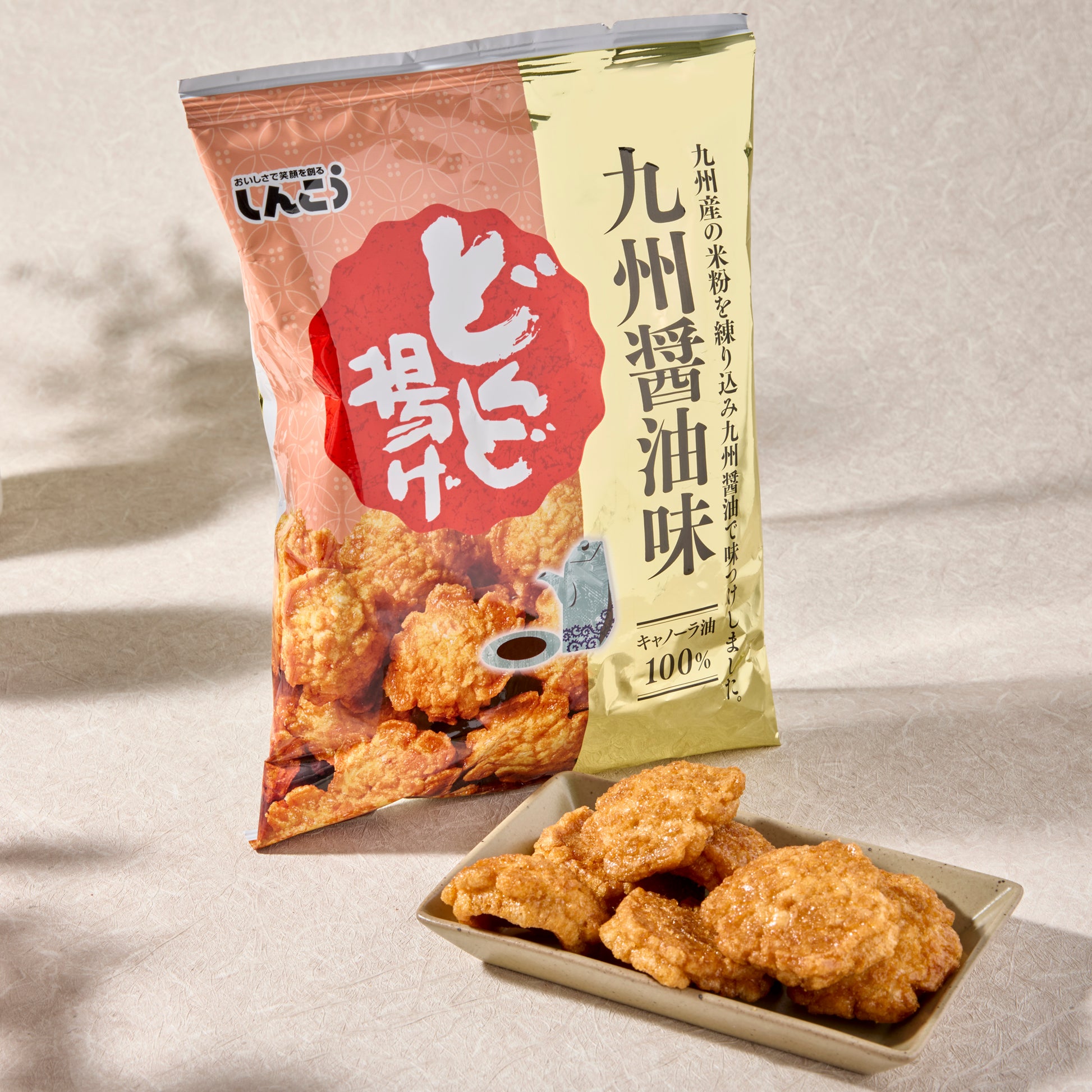 Made from rice flour and glazed with a sweet and savory Kyushu-style soy sauce, these arare rice crackers have been crafted by a maker with over 50 years of experience. Kyushu soy sauce is known for its mild sweetness, which gives these bite-sized crackers their rich, flavorful coating and satisfying crunch.