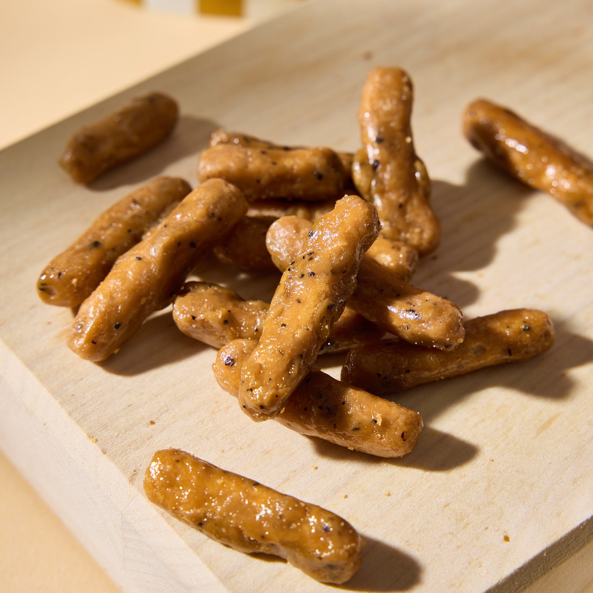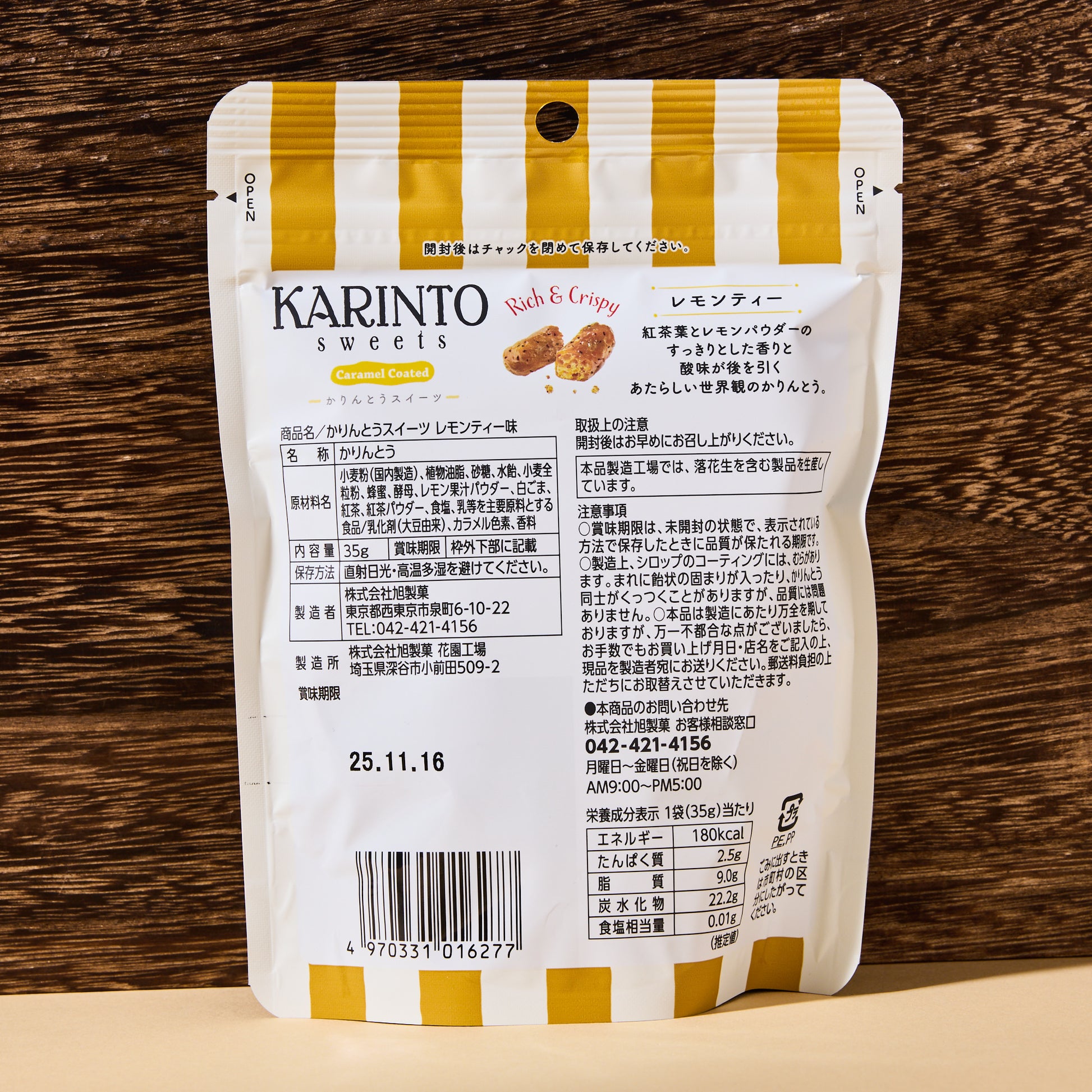 Karintō is a traditional Japanese snack made from deep-fried dough, often coated in syrup for a crisp and sweet finish. In this version, black tea syrup envelops each piece, accented with a dusting of lemon powder and black tea leaves. The result is a light, crunchy texture with a balanced blend of sweetness and tartness—an elegant reinterpretation of this time-honored treat.