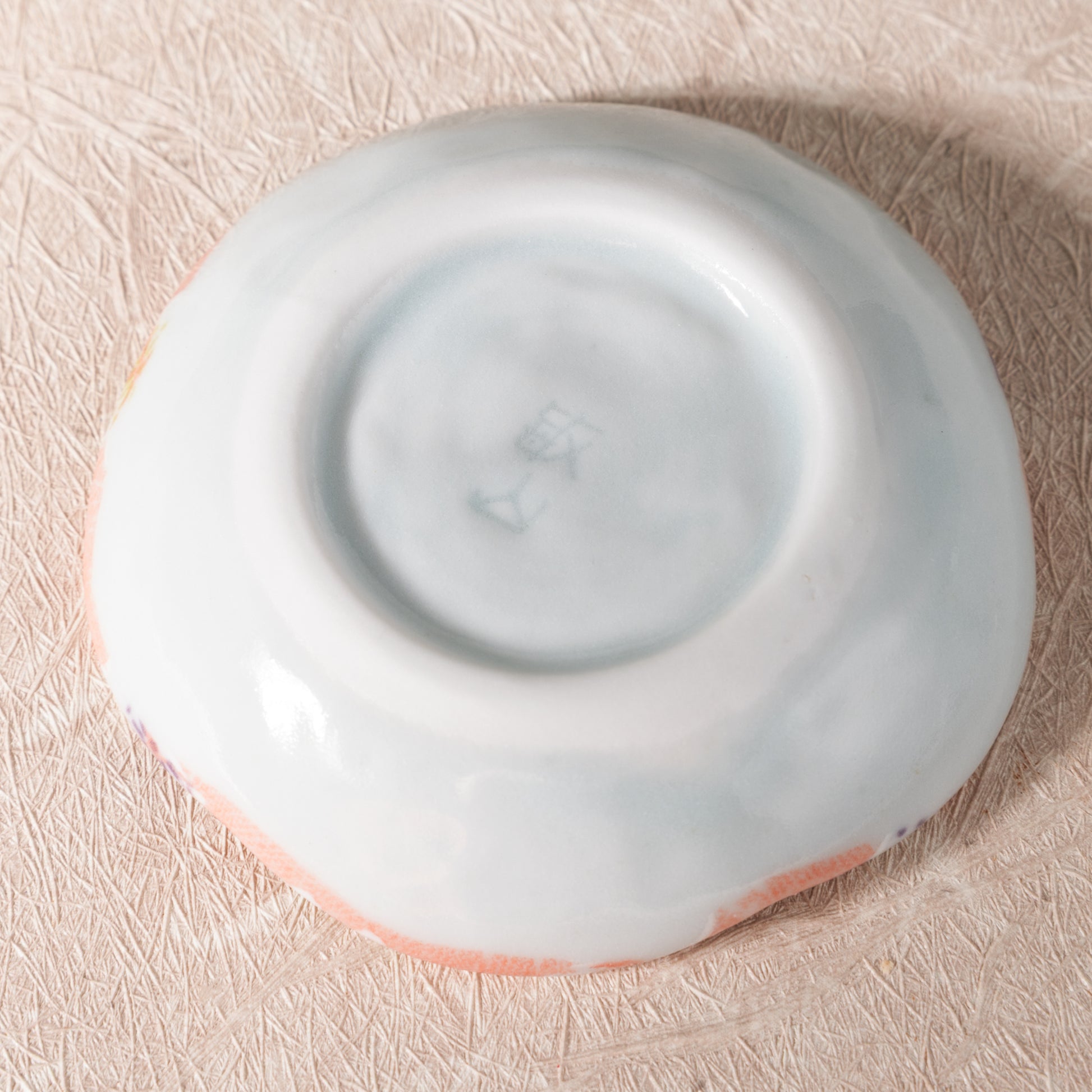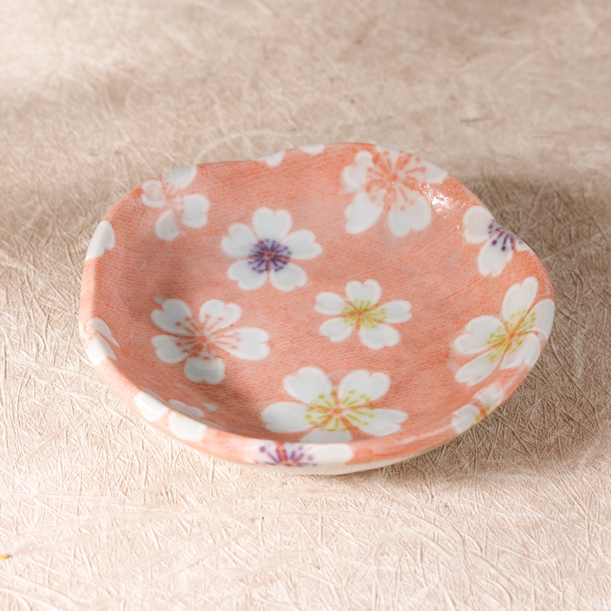 This charming, traditional small pink plate features a floral design with a soft outline inspired by a flower. It's versatile in use, ideal as a chopstick or spoon rest, or as a small accessory tray. An artful piece that blends functionality with thoughtful design.