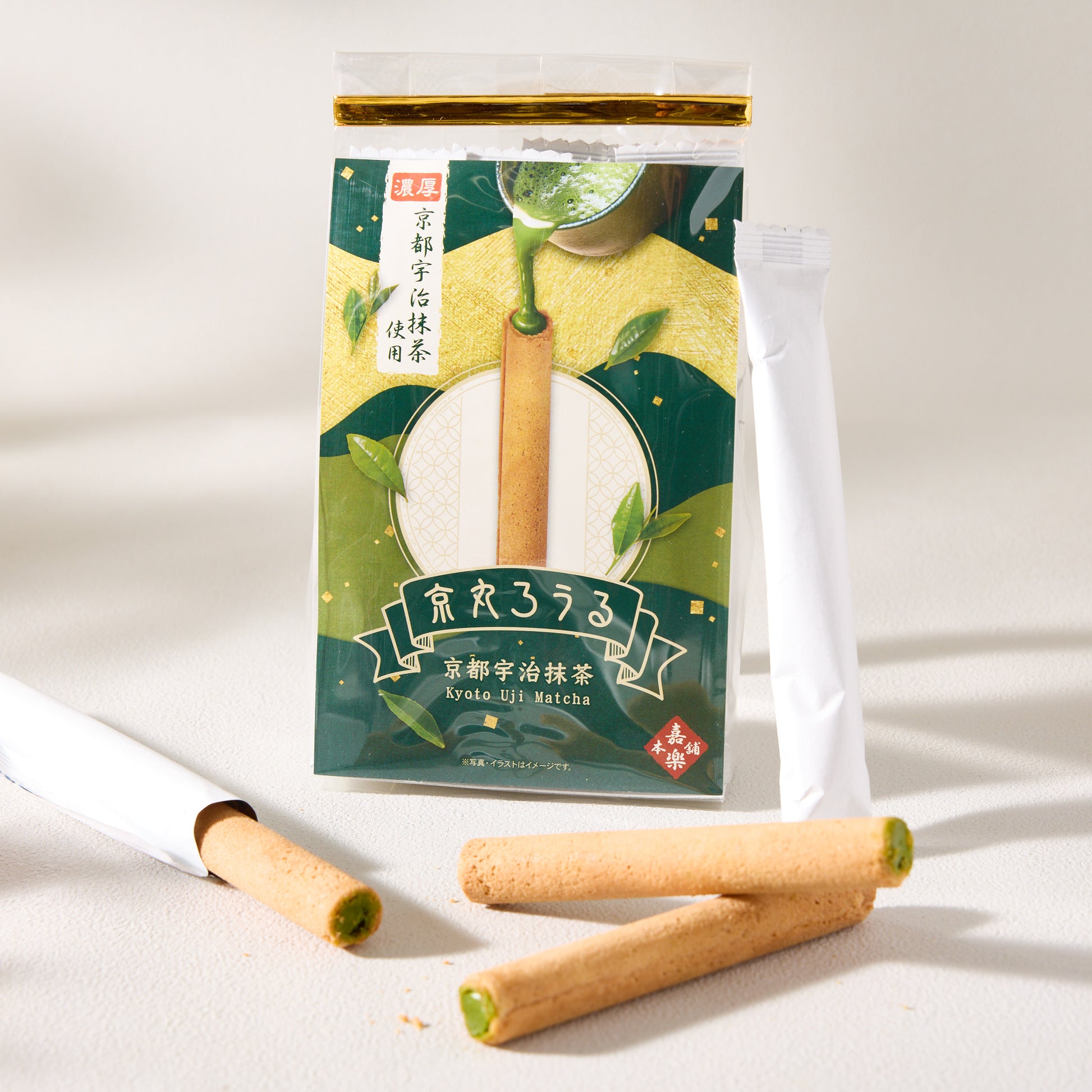 Experience the exquisite taste of this rare tea blend of matcha with these Matcha Chocolate Wafer Rolls! Each crispy wafer stick is filled with smooth matcha chocolate made with premium Uji matcha, offering a perfect balance of crunch and indulgent, earthy sweetness.