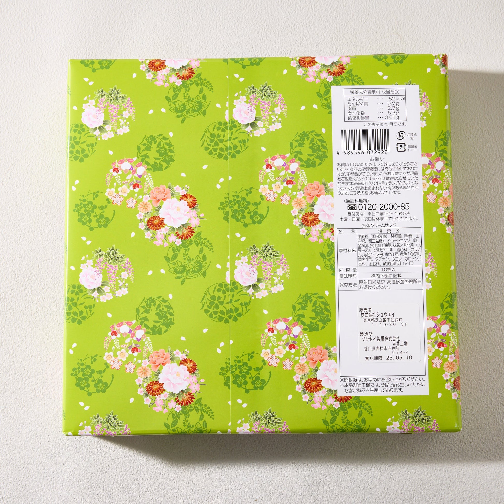 With traditional designs adoring the cookies, each bite offers a perfectly crisp texture paired with a subtly sweet matcha flavor for a balanced treat. Wrapped with beautiful, artistically designed paper, this 10 pack of cookies celebrates Japan's omiyage (souvenir or gift-giving) culture.
