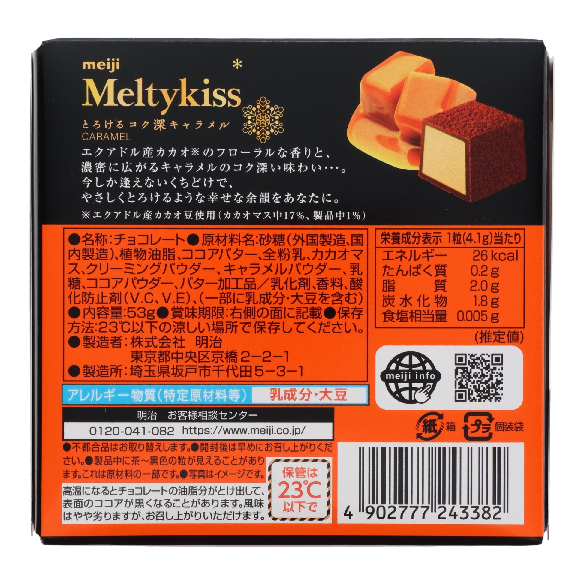 Experience the soft, slow-melting richness of Meiji Meltykiss in this indulgent caramel flavor. Each cube is coated in velvety caramel chocolate that dissolves smoothly, releasing a deep, comforting sweetness accented by gentle cacao notes. A light dusting of cocoa powder adds a refined finish, making this seasonal treat perfect for cozy winter moments or gifting to someone special.