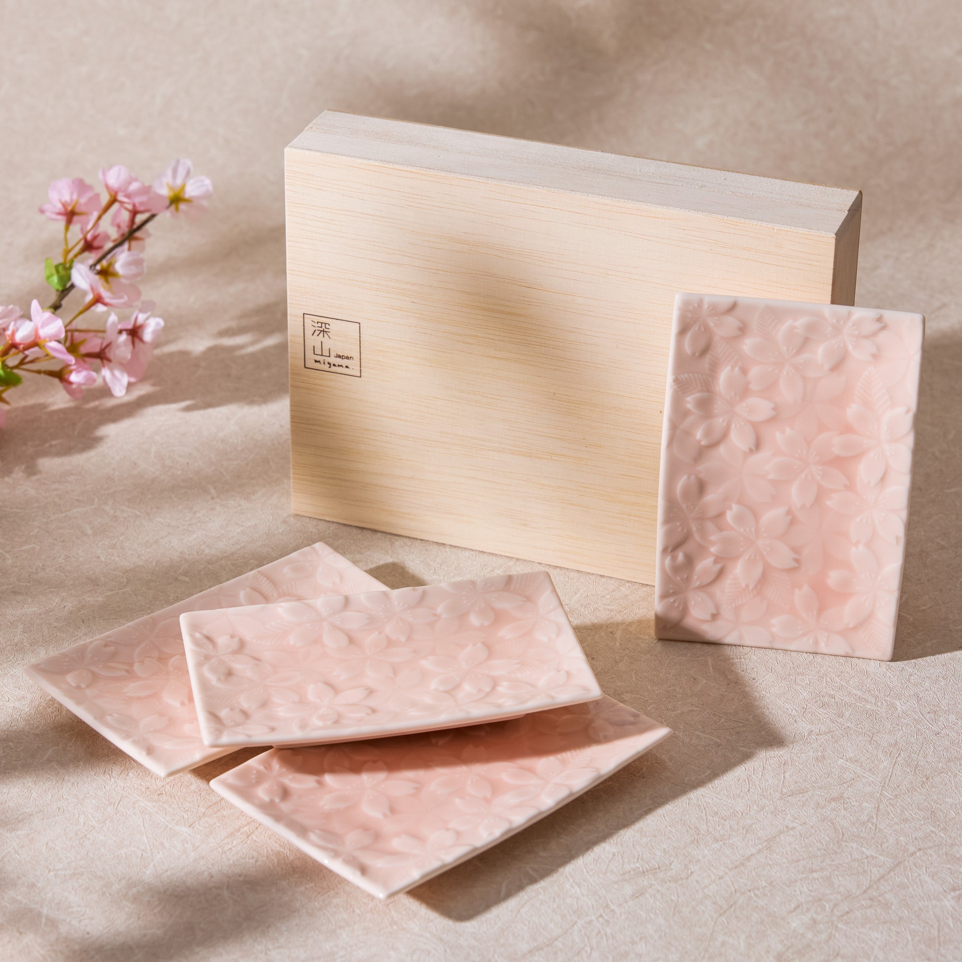 Miyama Embossed Sakura Plate Set (4 pieces)
