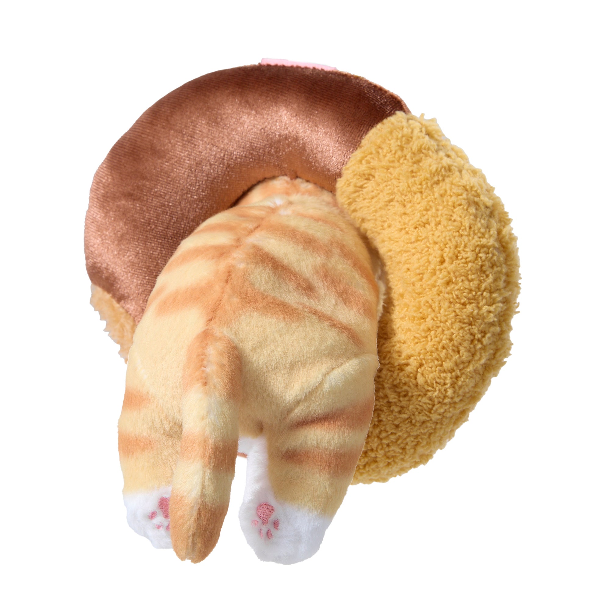Sweet and cuddly! This soft, Japan-exclusive Mofusand toy featuring keychain features an adorable orange tabby cat plushie pops right through a tasty half-coated chocolate donut.