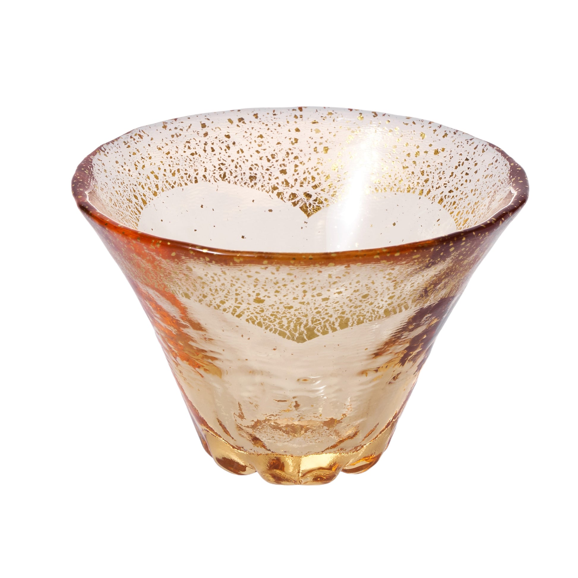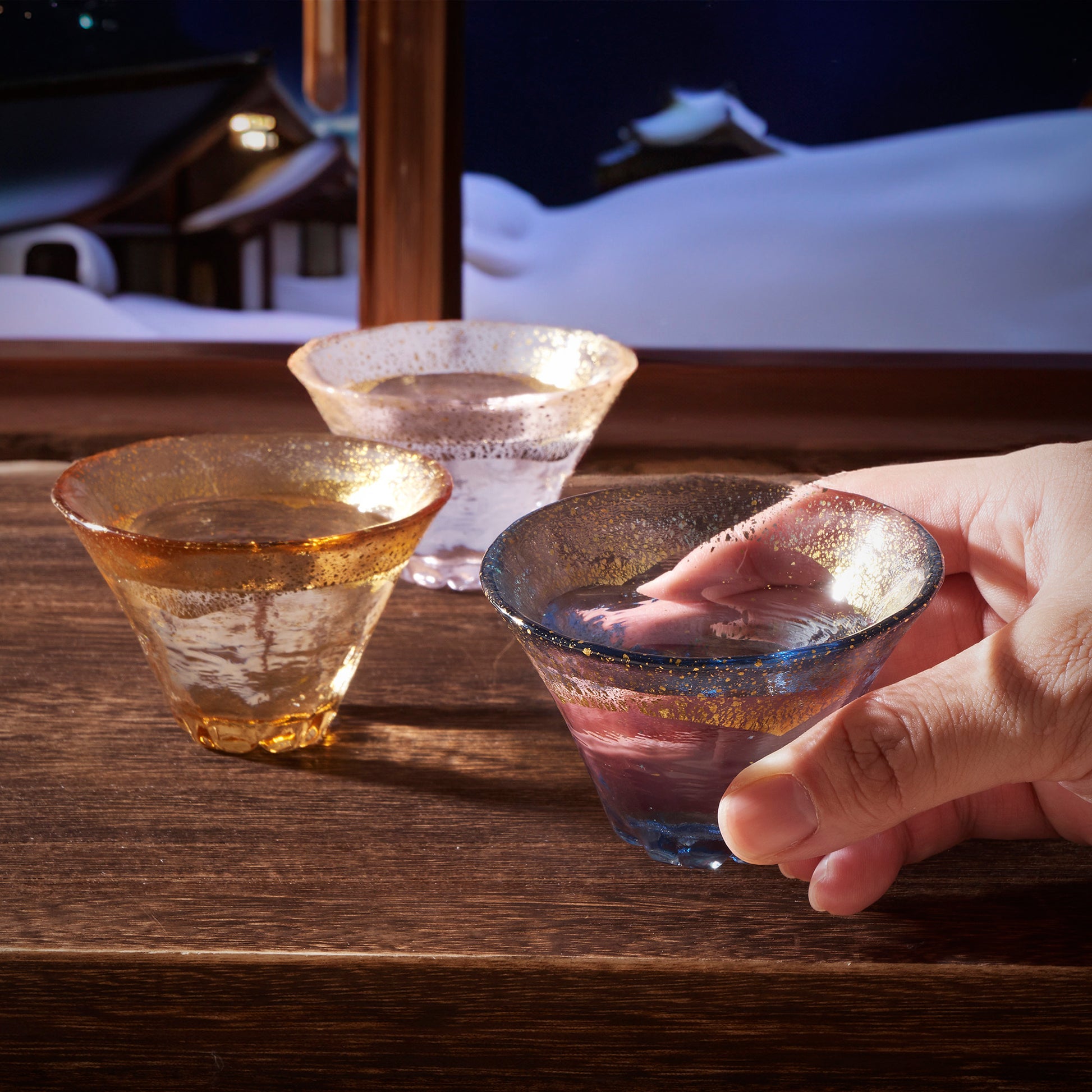 Inspired by Japan’s most iconic peak, this glass is intricately shaped like Mt. Fuji, featuring delicate gold leaf detailing along the rim and beautifully tinted glass. When flipped upside down, it transforms into a breathtaking homage to Mt. Fuji’s snow-capped beauty, while the base reveals the graceful form of a sakura flower, symbolizing the fleeting beauty of spring.