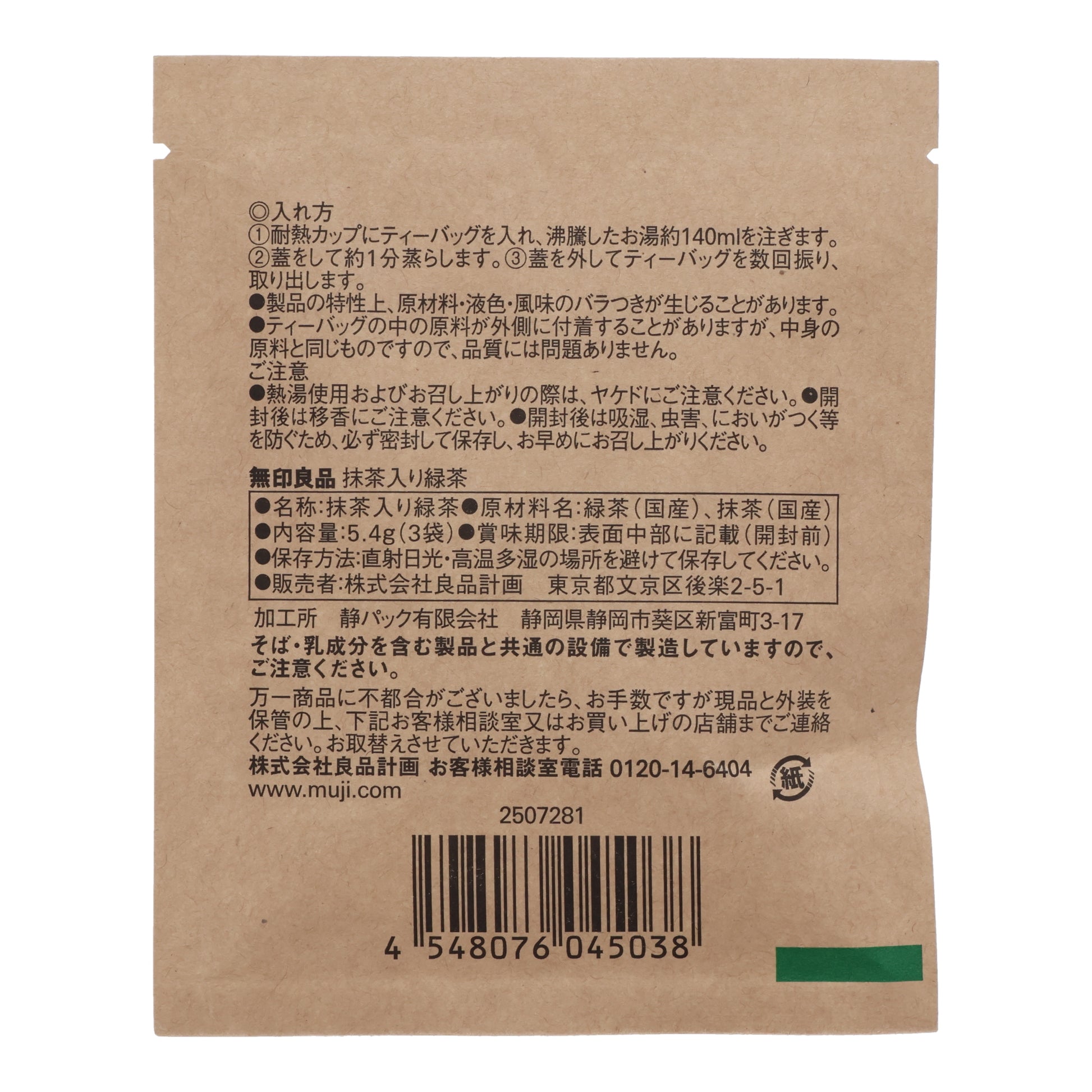 Muji Zodiac Green Tea with Matcha (3 tea bags)