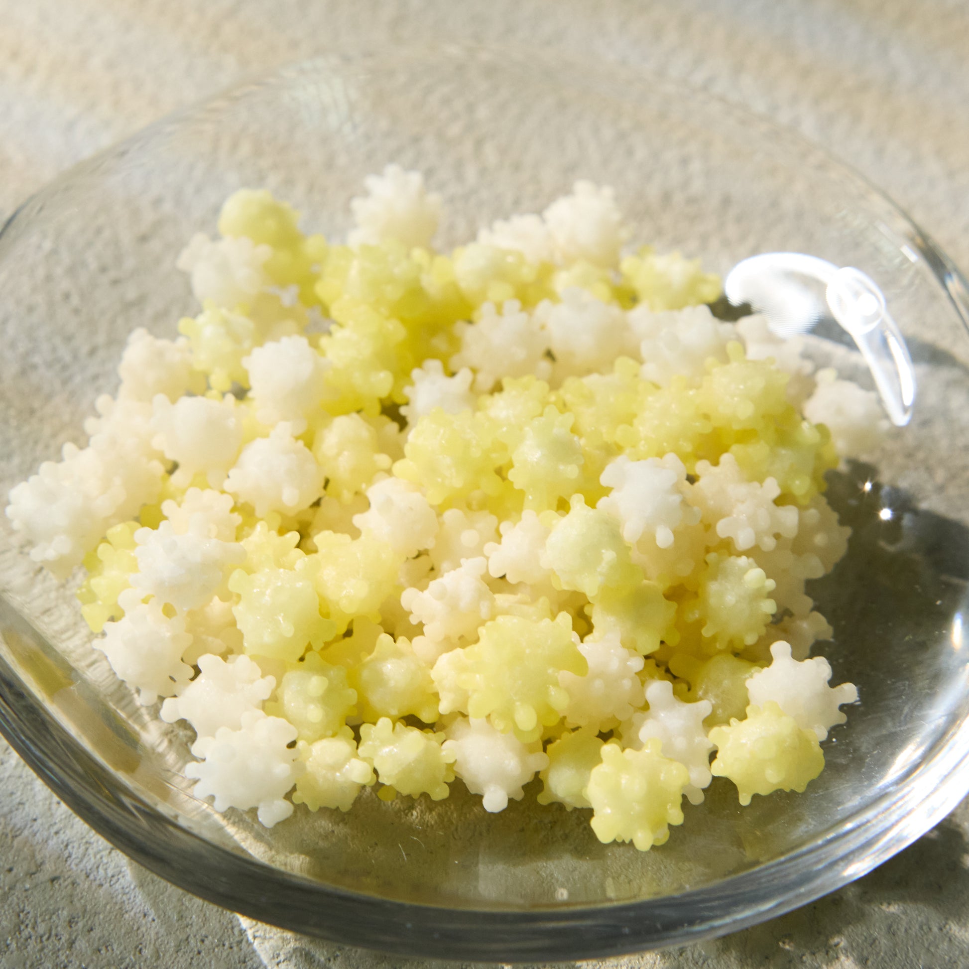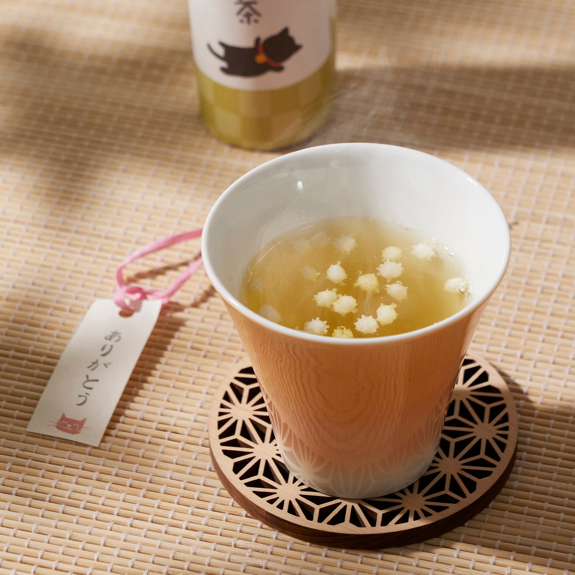 Accompany your tea with the delightful crunch of konpeito arare, traditional Japanese sugar candies with a yuzu milk flavor.