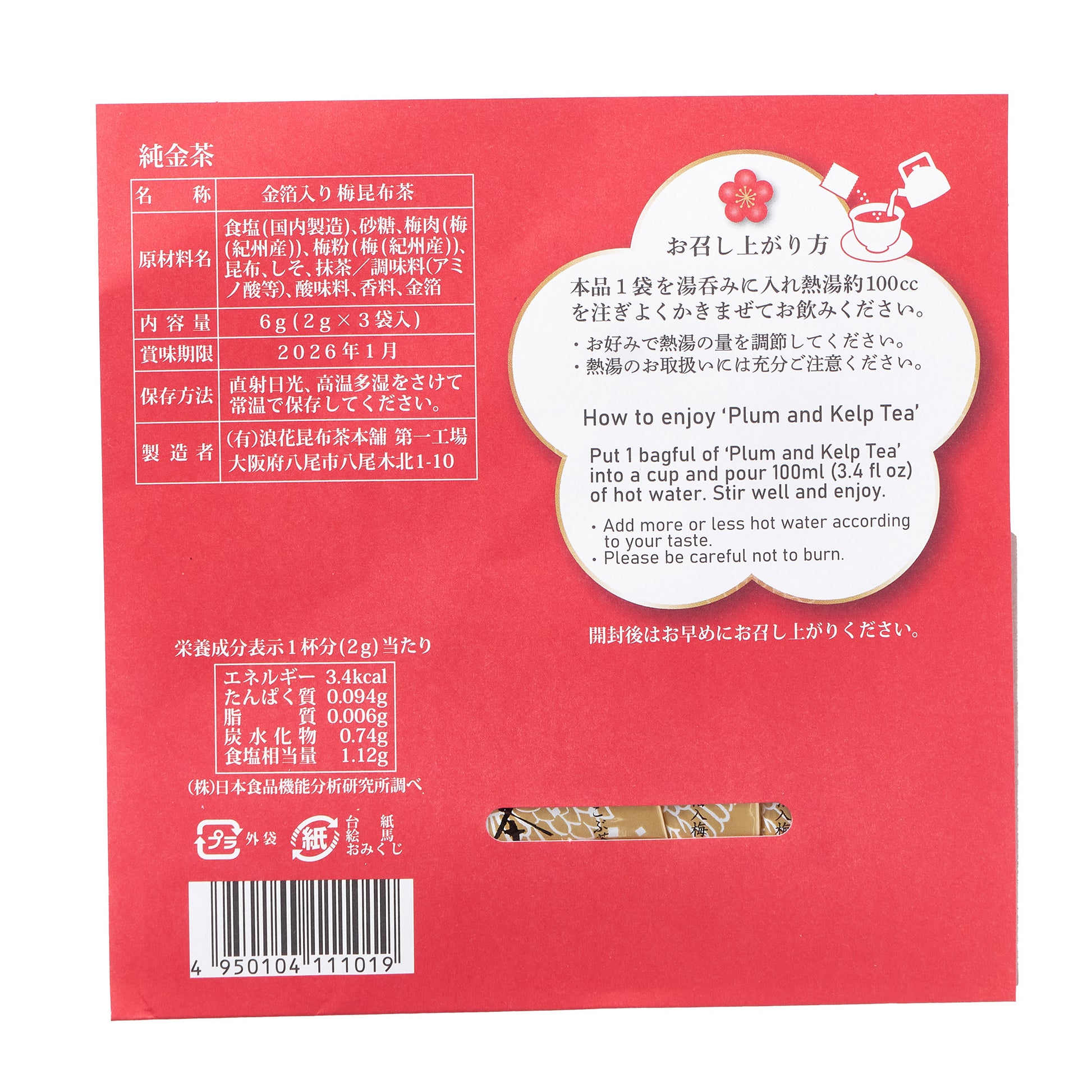 This New Year Plum Kelp Tea is a relaxing blend of plum and kelp, with delicate gold leaves infused for a touch of elegance.