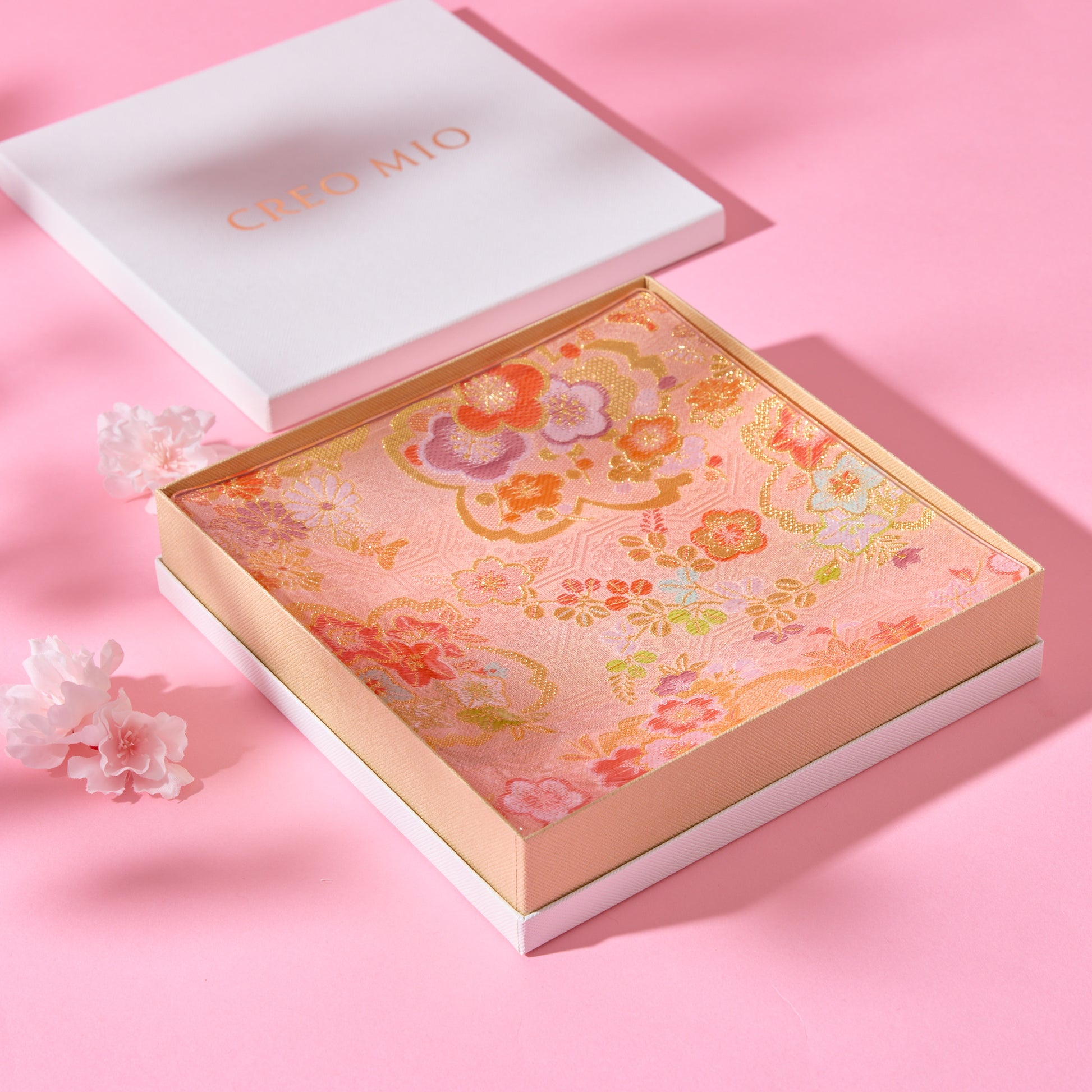 Nishijin Brocade Obi Large Square Glass Plate - Pink